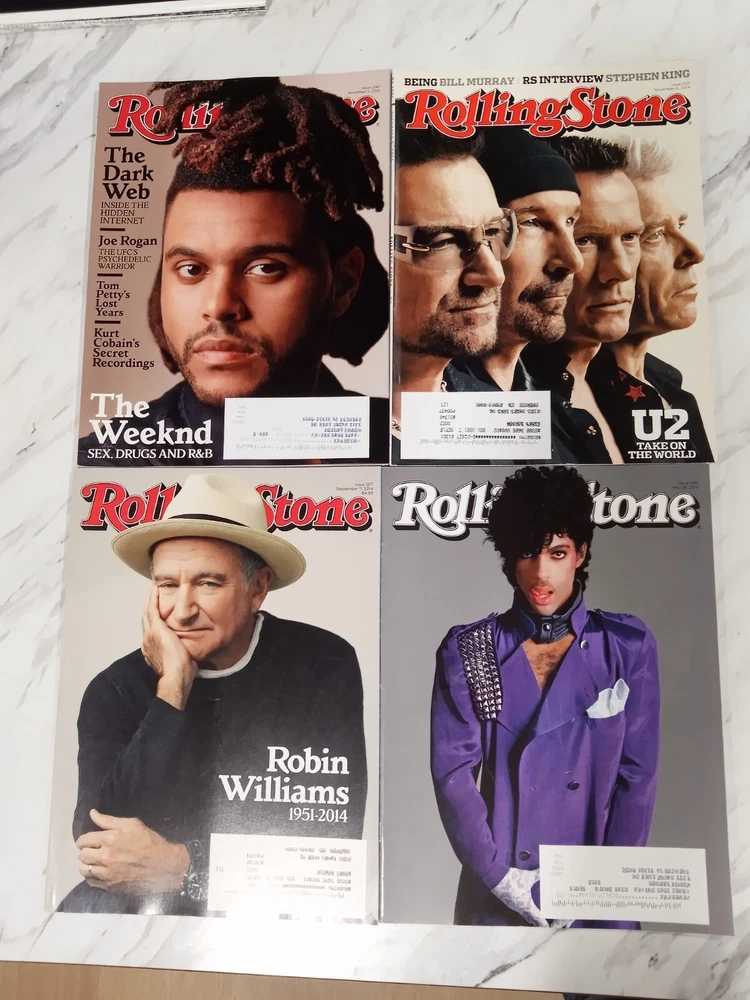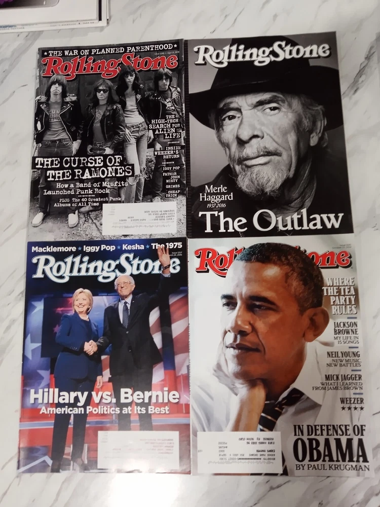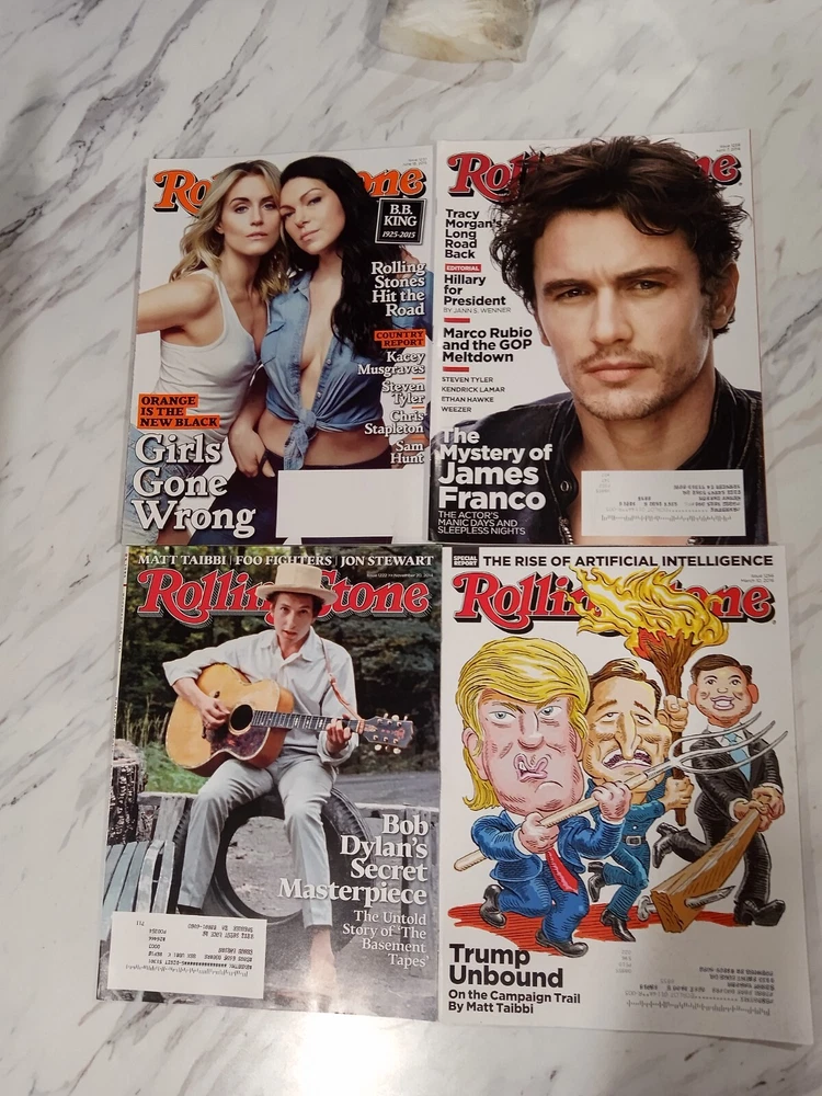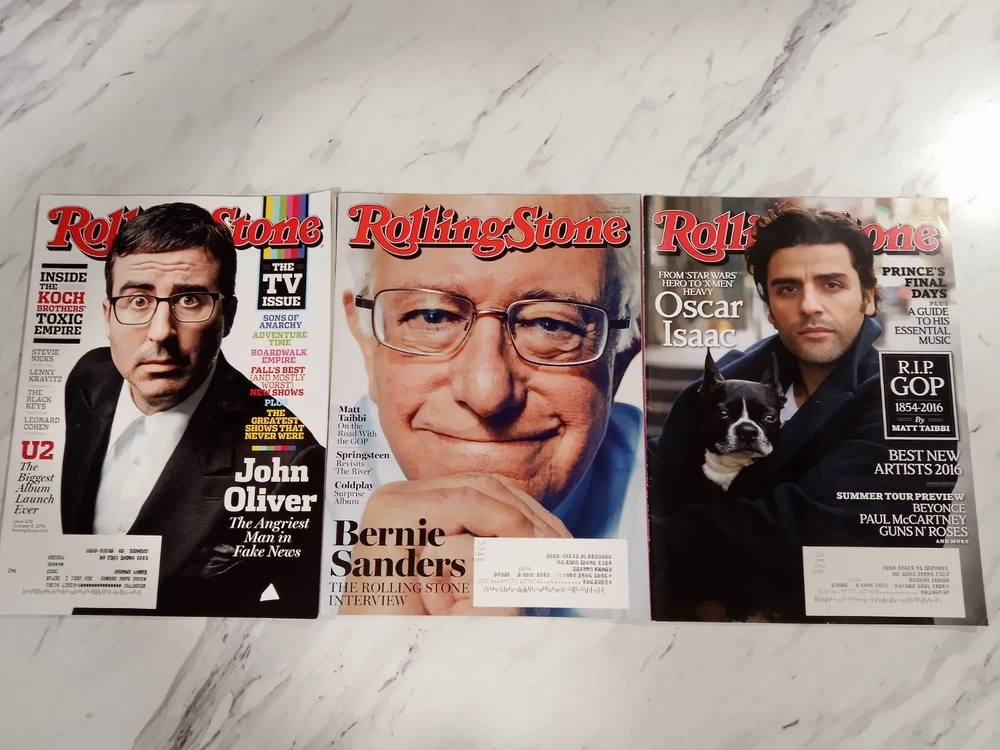 Rolling Stone 19 Magazine Lot: June 2, 2016 - Issue #1262 - Oscar Isaac - Prince's Final Days May 19th, 2016 - Issue #1261 - Prince May 5, 2016 - Issue #1260 - Merle Haggard (1937-2016): The Outlaw April 21, 2016 - Issue #1259 - The Curse Of The Ramones April 7, 2016 - Issue #1258 - The Mystery Of James Franco March 24, 2016 - Issue #1257 - Hillary Vs. Bernie March 10, 2016 - Issue #1256 - Trump Unbound On The Campaign Trail By Matt Taibbi December 3, 2015 - Issue #1249 - Bernie Sanders The Rolling Stone Interview November 5, 2015 - Issue #1247 - The Weeknd - Sex, Drugs, And R&B September 10, 2015 - Issue #1243 - NFL Special: The Unstoppable Rise Of Andrew Luck August 27, 2015 - Issue #1242 - Dr. Dre & Ice Cube: The Original Gangstas of N.W.A Tell All August 13, 2015 - Issue #1241 - Kevin Hart Is Killing It: The Making Of A Comedy Superstar July 16-30, 2015 - Issue #1239 - Kim Kardashian!: Inside Her World June 18, 2015 - Issue #1237 - Orange Is The New Black: Girls Gone Wrong November 20, 2014 - Issue #1222 - Bob Dylan's Secret Masterpiece: The Untold Story Of The "Basement Tapes" November 6, 2014 - Issue #1221 - U2 Take On The World October 23, 2014 - Issue #1220 - In Defense Of Obama By Paul Krugman October 9, 2014 - Issue #1219 - John Oliver The Angriest Man In Fake News September 11, 2014 - Issue #1217 - Robin Williams (1951-2014)