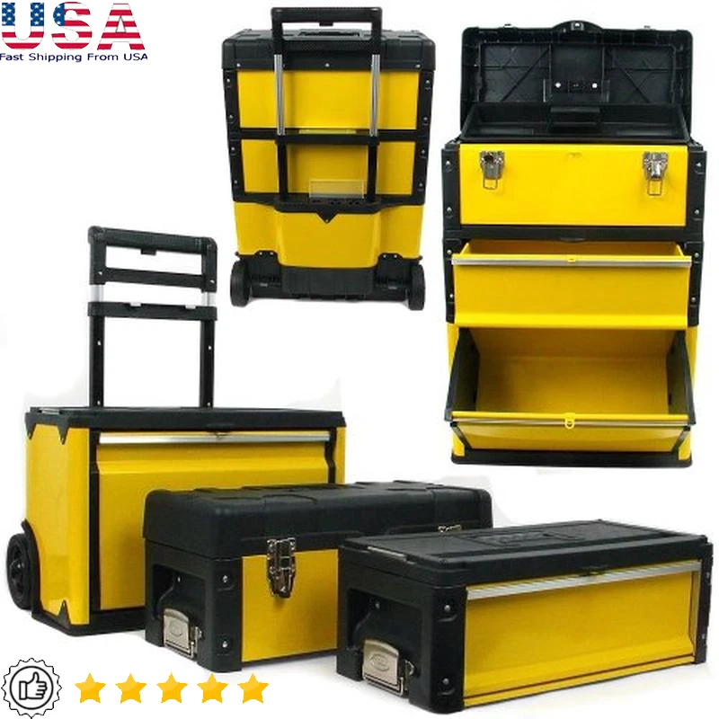 You may also like 14 Qt Aluminum Fry Pot W/Lid Perforated Basket Heavy Duty Handles Frying Cooking 73.79 USD 77.67 USD Free shipping 5% off Ultra Soft Absorbent Disposable Hand Towels Pop Up Box 1260 Sheets Hygienic New 69.14 USD 72.78 USD Free shipping 5% off Swivel Floor Chair 360 Degree Gaming Chair Adjustable Lumbar Support Armrests US 98.78 USD 103.98 USD Free shipping 5% off Whole Grain Horse Feed Mare Foal Nutrition Gastric Support Muscle Growth 50 Lb 73.89 USD 77.78 USD Free shipping 5% off Ergonomic Gaming Office Chair Adjustable High Back W/ Headrest Support White New 108.66 USD 114.38 USD Free shipping 5% off Outdoor Gas Double Tank Top Heater 8000-30000 BTU Adjustable Safety Features New 126.01 USD 132.64 USD Free shipping 5% off Convertible Sofa Bed Adjustable Couch Sleeper Folding Daybed W/ Cup Holders New 118.54 USD 124.78 USD Free shipping 5% off Twin Memory Foam Mattress 6 Inch Gel Supportive Pressure Relief Breathable Setup 59.26 USD 62.38 USD Free shipping 5% off Thickened Fence Post Repair Stake Kit Brackets Mender for Repair Leaning 4 Pack 118.54 USD 124.78 USD Free shipping 5% off Wall Mount Mailbox Large Capacity Durable Weather Resistant Steel W/ Flag Kit US 50.37 USD 53.02 USD Free shipping 5% off Dog Agility Training Set W/ Tunnel Jumps Weave Poles Whistle Lightweight Bag New 87.98 USD 92.61 USD Free shipping 5% off Heavy Duty 5 Tier Adjustable Garage Shelving Unit 3000LBS Capacity Steel Storage 118.54 USD 124.78 USD Free shipping 5% off About this item MOBILE TOOL BOX WITH WHEELS - This set of stackable tool boxes includes a traditional toolbox, a two-drawer chest, and a deep bottom compartment that latch together with enough room for all your essential tools and supplies for organized work on the go. ROLLING TOOL STORAGE - This tool chest has two 5. 75-inch-tall soft rubber wheels that are 2-inches-wide to take everything you need off-site. Maneuver this rolling tackle box easily and quietly for comfortable transporting on worksites or at craft fairs. FOLD-DOWN HANDLE - The tool cart with drawers has a fold-down handle with a comfort grip that is attached to the lower tool bin to maneuver it around a garage, workshop, or craft room. Ergonomic shaping of the handle helps prevent hand fatigue during use. RUGGED DESIGN - This tool box on wheels is made of durable polymer and steel to keep your gear safe during travel or on rough construction sites. Each toolbox is lockable for extra security, and the top two boxes have convenient side carrying handles. PRODUCT DETAILS - Materials: Steel and Polymer. Dimensions: (L) 20. 5" x (W) 12" x (H) 28"; Top Compartment: (L) 19. 5" x (W) 8" x (H) 10"; Middle: (L) 19. 5" x (W) 7" x (H) 10"; Bottom: (L) 19" x (W) 9. 5" x (H) 13". Color: Black and Yellow. › product details Brand Stalwart Material Alloy Steel Color Black/Yellow Product Dimensions 20. 5"L x 12"W x 28"H Water Resistance Level Water Resistant You may also like Flexible Kink Resistant Pressure Washer Hose 3100 PSI 50ft W/ 22MM Connectors US 45.11 USD 47.48 USD Free shipping 5% off 28 in Square Tempered Glass Metal Table W/ Dark Brown Rattan Edging & Foot Pad 53.19 USD 55.99 USD Free shipping 5% off Custom Fit Vacuum Sealer Bags Airtight Storage Sous Vide Rolls 3 Pack BPA Free 36.09 USD 37.99 USD Free shipping 5% off Storage Trunk 108Qt W/ Wheels Lockable Sturdy Latches Stackable Transport Green 34.55 USD 36.37 USD Free shipping 5% off Automatic Food Vacuum Sealer System Starter Kit Dry Moist Modes LED Indicator US 62.03 USD 65.29 USD Free shipping 5% off 12-Cup Digital Coffee Maker Programmable Water Window Auto Shutoff Sneak-A-Cup 35.14 USD 36.99 USD Free shipping 5% off Etagere Organizer Storage Shelf Linen Shade Floor Lamp ‎Freestanding ‎Rectangle 39.56 USD 41.64 USD Free shipping 5% off 3.5 Cup Food Chopper Mini Kitchen Appliance Pulse Blending Locking Blade Red New 56.99 USD 59.99 USD Free shipping 5% off Electronic Hearing Protection NRR 21dB Shooting Hunting Indoor Outdoor Plastic 39.63 USD Free shipping 5 Compartment Steel Mesh Desktop Organizer W/ 3 Trays Efficient Storage Durable 38.69 USD 40.73 USD Free shipping 5% off Bold Espresso Variety Pack 40-Count Pods Medium Dark Roast Recyclable Pods New 37.24 USD 39.2 USD Free shipping 5% off Tucson Deluxe Console Table W/ Storage Shelf Multiple Finishes Wood Frame Black 43.38 USD 45.66 USD Free shipping 5% off