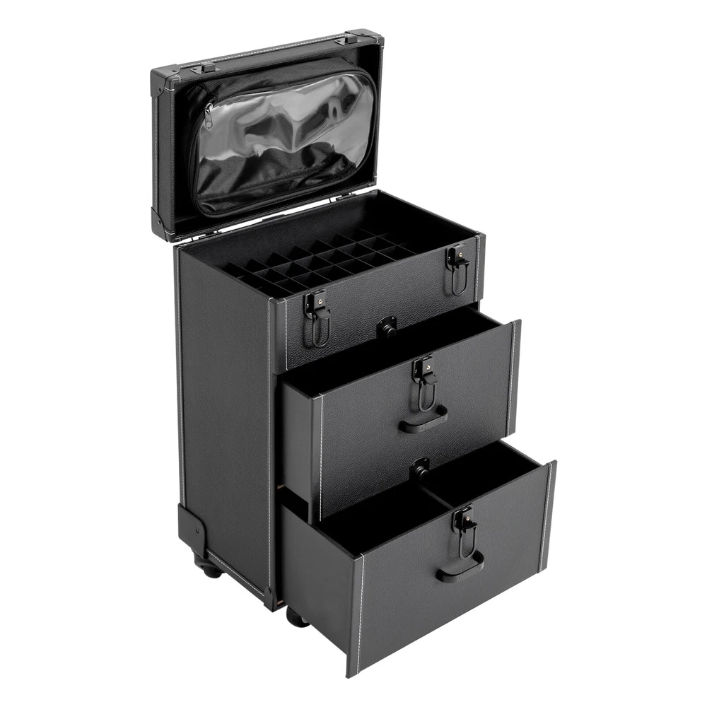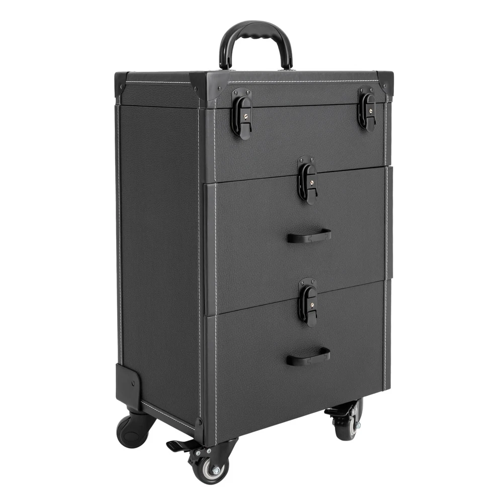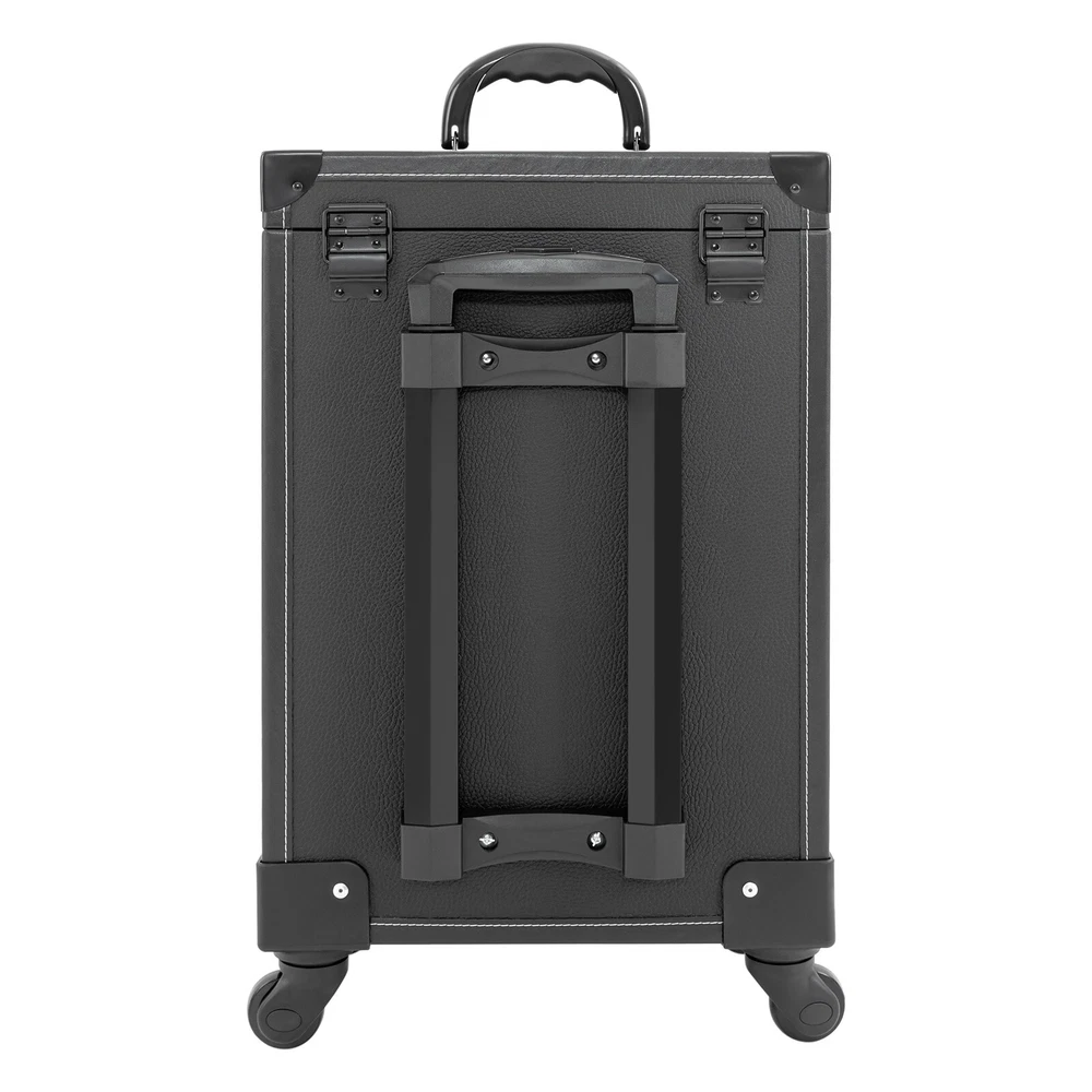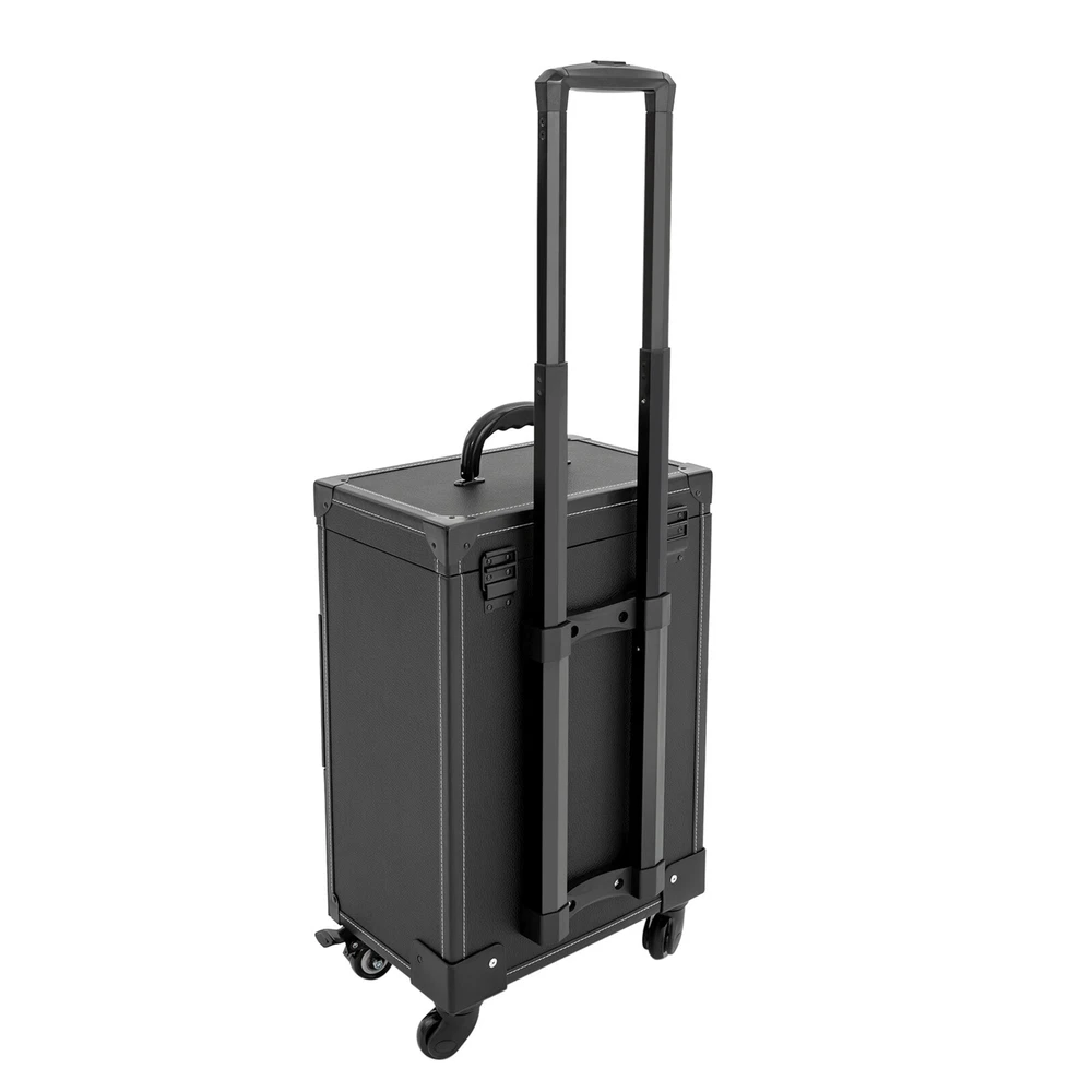 Specification Color: Black Shape: Rectangular Number of Tiers: 3 Number of Wheels: 4 Number of Keys: 2 Caster Type: Swivel Target Audience: Unisex Adult Mounting Type: Free Standing Material: PU, PVC, Zinc Alloy, Aluminum Alloy Max. Load-bearing Capacity: About 40kg/88.2lbs Lid Size(L*W): 36*23cm/14.2*9inch Wheel Height: 7cm/2.8inch Telescopic Rod Length (Min.): 38cm/14.9inch Telescopic Rod Length (Max.): 86cm/33.8inch Second Tier Inside Size: 30*19.5*13.5cm/11.8*7.7*5.3inch Each Compartment of Top Tier Size(L*W): 3.5*3.5cm/1.4*1.4inch Each Compartment of Third Tier Size: 14.5*19*13.5cm/5.7*7.5*5.3inch Top Tier Height: 9cm/3.5inch Second&Third Tier Height: 17cm/6.7inch Overall Case Body Size: 36*23*49cm/14.2*9*19.3inch Overall Product Size: 36*23*101cm/14.2*9*39.76inc Welcome to llppwe❤, have a good day!!! Description If you are troubled by storing all your hairdressing tools in order and finding them easily, our makeup train case can be of great help to you. Featuring high durability, attractive appearance, large capacity, universal wheels, humanized handles, a telescopic rod, and more, this product is easy to carry outside while keeping practical and beautiful. It is an ideal choice for young manicurists, make-up artists, and hairdressers/cosmetics lovers to store various cosmetics. Key Features Beautiful Appearance: Elegant black color combined with a rectangular frame, smooth lines, and delicate lychee texture gives this product a stylish and beautiful look. High-quality black hardware and exquisite stitching also add to its appearance. Durable and Sturdy: This product is constructed with premium PU, PVC, and reinforced corners, aluminum alloy rod, zinc alloy-wrapped edge , which is waterproof, wear-resistant , and has a long service life. Large Capacity: The 3-tier and compartment designs, cubicles, and a large clear pocket on the lid give this case a large capacity to hold your daily cosmetics and makeup tools in a categorized way, allowing you to quickly find what you want. And the dividers are removable for organizing different sized bottles. Easy to Move&Carry: 4 universal wheels (2 of which are lockable) ensure that the case can be moved smoothly and silently in all directions and allow for safe fixation to handle different road conditions. The telescopic handle and top handle give it high portability. Easy to Clean: The lid and drawer designs can prevent dust from entering, along with the waterproof surface, making it easy to clean. You just need to wipe off the dirt with a wet cloth. Excellent Load-bearing Capacity: The sturdy construction and the zinc alloy frame provide the product with an excellent weight-bearing capacity of 88.2 lbs. You can place all kinds of hairdressing and beauty tools in it with confidence. High Safety: The 4 latch locks and waterproof surface provide maximum protection and security for your toiletries, giving you peace of mind while traveling. Protective Packaging: To prevent the product from being damaged and bumped during transportation, we pack it with pearl cotton for maximum protection of your products. After-sales Service : We aim to provide quality products and services. If you have any problems, please feel free to contact us, and we will reply and solv e the problem for you as soon as possible. Details Back Buckles: The back of the luggage has two hardware eight-nail back buckles to make the case more stable and to ensure that it remains as good as new when repeatedly opened and closed. User-friendly Drawer Handle: The 2 comfortable drawer handles of the second and third tiers allow for convenient closing/opening of the drawers, thus ensuring easy access to the inside items. Application It is good for manicurists, makeup artists, both beginner and professional, freelance makeup artists, wedding makeup artists, celebrity makeup artist, and cosmetic trainees. Structure Overview The inside of the lid has a makeup bag where you can keep the things you use regularly for quick and easy access. The first tier can be used for nail varnish or other small items. The second tier is suitable for larger items such as hair dryers, curling wands, nail art machines, and more. The third tier has two compartments for medium items, such as cosmetics, hairspray spray. Specification Color: Black Shape: Rectangular Number of Tiers: 3 Number of Wheels: 4 Number of Keys: 2 Caster Type: Swivel Target Audience: Unisex Adult Mounting Type: Free Standing Material: PU, PVC, Zinc Alloy, Aluminum Alloy Max. Load-bearing Capacity: About 40kg/88.2lbs Lid Size(L*W): 36*23cm/14.2*9inch Wheel Height: 7cm/2.8inch Telescopic Rod Length (Min.): 38cm/14.9inch Telescopic Rod Length (Max.): 86cm/33.8inch Second Tier Inside Size: 30*19.5*13.5cm/11.8*7.7*5.3inch Each Compartment of Top Tier Size(L*W): 3.5*3.5cm/1.4*1.4inch Each Compartment of Third Tier Size: 14.5*19*13.5cm/5.7*7.5*5.3inch Top Tier Height: 9cm/3.5inch Second&Third Tier Height: 17cm/6.7inch Overall Case Body Size: 36*23*49cm/14.2*9*19.3inch Overall Product Size: 36*23*101cm/14.2*9*39.76inch Package Size: 63*32*41cm/ 24.8*12.6*16.14inch Gross Weight: 10kg/22.04 lbs Product Weight: 9kg/19.84 lbs Package Included 1*Makeup Train Case 2*Keys Notes Please note that cosmetics or makeup tools are not included. This product is a carry case only. Please allow the slight color difference caused by the shooting light and 1-3 cm error due to manual measurement, and make sure you do not mind before ordering. Payment Delivery details Terms of sales About us Contact us Payment We accept ebay payment 。 Fees such as import duties, taxes are not included in the item price or shipping costs. These charges are the buyer's responsibility. Delivery details Shipping: 2-9 working days to: USA Terms of sales We maintain high standards of excellence and strive for hundred percent customer satisfaction. Feedback is very important to us. We hope that you contact us immediately before you give neutral or negative feedback, so that we can addre