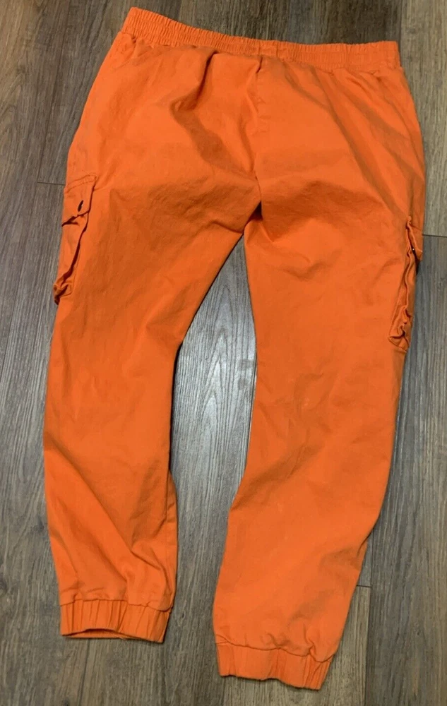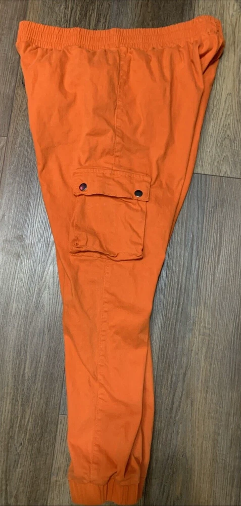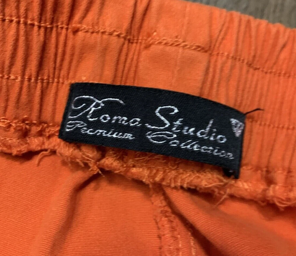 Upgrade your streetwear game with these Roma Studio Premium Collection cargo joggers. The colorful orange design, featuring a solid pattern and tapered leg style, is perfect for any hip hop-inspired outfit. The pull-on closure and elastic waist make them comfortable for casual wear, parties, or travel. Made from a blend of spandex, ramie, and cotton, these pants are easy to care for and machine washable. The mid-rise fit and cargo style add to the overall look. These pants come in a 3XL size with a waist size of 36 inches and an inseam of 28 inches. Get ready to turn heads with these stylish and comfortable pants.