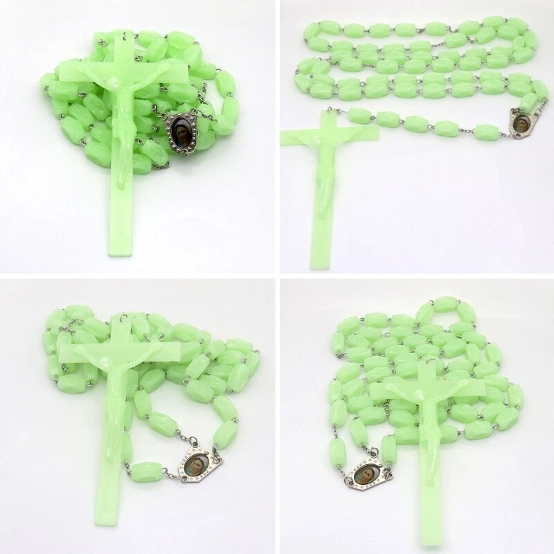 Rosary Beads Cross Pendant Necklace Jewelry Female Necklaces Chokers Features: Although it seems like a cross necklace, but it is a rosary to be exact, Catholic rosary prayer necklace, Catholic faith, show your belief. for the person who believe love and belief of or Catholic. The luminous rosary beads will glow in the dark after absorbing light for a while. material. Could wear daily for the rosary necklace or hang on the rearview mirro of your car, truck, or portable pocket for long driving or travel to keep calm and feel safe in hearts. Specifications: Size: Detail Size in the Picture Package Includes: 1x Luminous Rosary Necklace note: Please allow 1-2cm errors due to manual measurement. Due to the difference between different monitors, the picture may not reflect the actual color of the item.