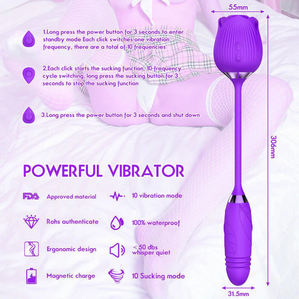 Store Categories Store Categories Other 10 Speed Rose Sucking Vibrator Clitoral G-spot Suction Thrusting Dildo Sex Toy Product Description Vibrator Rose Toy with Thrusting Dildo – Double the Toy, Double the Pleasure Our vibrator rose was designed with your happiness in mind, allowing you to indulge in endless moments of pleasure and forget about stress! Whether you want to spice things up in your bedroom with your partner or simply enjoy a little session of self-pleasure, this rose sex toy is here to grant your wishes! With 9 sucking modes and 9 vibrating and thrusting levels, this rose vibrator with dildo promises to pamper your senses, offering maximum multi-level stimulation! Still not convinced? Here are some of the amazing features of our rose toy: Made with high-quality, soft silicone; Comfortable experience; Non-toxic and odorless; Waterproof materials are safe and easy to clean Introducing the Ultimate Way to Enhance Your Pleasure & Indulge in New Sensations Introducing our sleek and stylish sex toy, perfect for women who want to spice up their love life and explore their bodies in a whole new way. This sucking and tongue vibrator features powerful suction and vibration capabilities that range from gentle to wild, allowing you to customize your experience and discover new levels of pleasure. Our suction vibrator is a game changer in the world of adult toys. With its powerful suction and vibration capabilities, customizable modes, and sleek design, it is the perfect toy for anyone looking to explore their body and enhance their pleasure. Why Our Rose Sex Toy Suction? Strong & Powerful Suction Easily Rechargeable Easy to Use & Clean Long Lasting Battery Sleek & Stylish Design Highly Portable Multiple Uses Lightweight & Portable Payment Policy Shipping Policy Returns Policy Contact US Payment Policy Shipping will be arranged within 1 business day once Full payment is cleared. Shipping Policy Free same days Shipping! All orders will be processed and shipped within 24 hours, Monday to Friday in most cases. Most packages will be shipped via USPS First Mail, it usually takes 3-5 days for delivery. A tracking number will be emailed to you upon shipment. Please note that USPS does not update tracking information location by location. We only ship to address that you input during Paypal checkout. Buyers are responsible for wrong or undeliverable address. We do not include an invoice or any advertising materials with our shipm ents. Returns Policy 1. We stand behind our items and offer 30 days warranty . All items are in new and working condition unless specified otherwise elsewhere in the description. 2. All Returns - defective or otherwise - MUST BE PREAUTHORIZED to guarantee refund or exchange. Please contact us to get an authorization and return address. 3. Buyer agrees to pay for the cost of re-shipment for undeliverable or wrong addresses. 4. Buyer is responsible for Return Postage as well as a 20% restocking fee if return/replacement is not a result of our mistake such as wrong item. 5. Replacement or Refund will be made upon receipt of the returned item. Please include tracking number so we can process ASAP. If you do not wish to wait for a replacement, please repurchase the item. 6. ALL REFUNDS will be processed via PayPal. Please double check via PayPal history and transaction for confirmation. PayPal will send it back to whatever you used to pay within 3-5 days. Contact US Please be patient when contacting us, all messages will be replied within 12 hours. Please let us know immediately if a package is damaged upon arrival. Feel free to contact us if you’d like to combine shipping on your purchases. We appreciate your feedback and we will send buyers positive feedback after a shipment has been processed. Customer satisfaction is significant to us. If you are dissatisfied with a transaction for any reason. Before taking any action, please contact us through eBay and we will do everything we can to help you. Copyright © 2023 Dianxiaomi