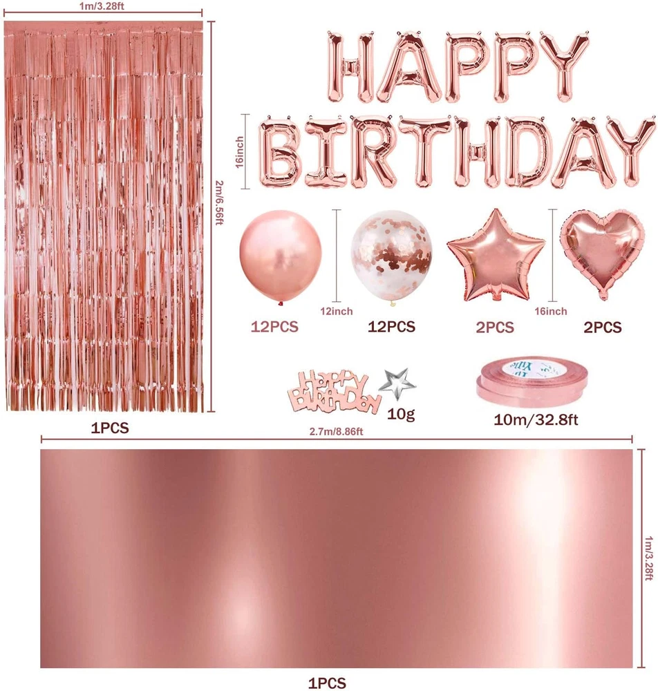 Store New Arrivals Add to Favorite View Feedback Contact Rose Gold Birthday Party Decoration, Happy Birthday Banner, Rose Gold Fringe Curtain, Foil Tablecloth, Heart Star Foil Confetti Balloons, 10G Table Confetti for Women Girl Birthday Party Description Item model number AB-122 Unit Count 1.0 Count Color Rose Gold Product Dimensions 6.3 x 8.66 x 1.81 inches; 14.11 ounces Material Paper, Foil, Latex Included Components Ribbons, Tablecloth, Fringe Curtain, Straw What you get: Happy Birthday banner, 12pcs confetti balloons, 12pcs rosegold balloons, 1pc rose gold fringe curtain, 1pc tablecloth, 4 pcs foil balloons (heart and star), 10g rose gold confetti, 1 straw, 20m ribbons. How to inflate: Latex balloons support air and helium, can fly high after filled by helium. Foil balloon as letter and heart balloons don't support helium, please inflate them via. straw directly. All balloons are non-toxic and durable, safe for kids. Rose Gold Fringed Foil Curtain: 1m*2m large, shining, suggest you to hang it on the door, or hand it on the wall as party backdrop. Rose Gold Foil Tablecloth: 100 x 270cm (40" x 106" ), also shining. Spill some confetti on the tablecloth, fabulous! Perfect birthday decoration Set for girls and Ladies. If you want to make your party shine, consider combining it with our plates cups napkins balloon party supplies in rose gold! Please search for keywords in our shop. Product Description MOVINPE ROSE GOLD BIRTHDAY DECOR KIT TAKE YOU TO EXPERIENCE A TOP PARTY DECORATIONS Birthday Atmosphere Add a little extra shine to your rose gold birthday decorations with MOVINPE Rose Gold Happy Birthday Balloon Decor Kit! Decor You Party Perfect to use in birthday party, shop windows and corporate events. A Great Hit Guests will love the rose gold shiny decoration which floats away as you celebrate! PACKAGE INCLUDE: 13PCS 16" Happy Birthday Banner 1PCS Foil Fringe Curtain 1PCS Foil Tablecloth 2PCS 16" Foil Heart Balloons 2PCS 16" Foil Star Balloons 24PCS 12" Latex& Confetti Balloons 10g Birthday Confetti 20m Ribbons Tape the balloon banners to the wall or string them along a ribbon to make a unique photo booth backdrop. There's no need for helium - just inflate the balloon banners with the included straw for an easy birthday party decoration. Fill these latex balloons with helium and shake to wake the rose gold confetti! Attach string and tie them down or add them to a beautiful balloon bouquet for an eye-catching arrangement. They can also be used for fun party games! MOVINPE birthday party decor kit is durable, enough to use over and over again.A super perfect birthday gift for your families,friends,colleague and so on. Customer Feedback & Decoration recommendation ABOUT US We offer the best prices around on high quality products. Our E-store includes media such as books, movies, music and games while offering electronics, toys, sporting apparel, clothing, tools, general home, garden items and more. SHIPPING We are always working hard to ensure your package arrives as soon as possible. Please understand that some factors like weather, high postal traffic, and the performance of shipping companies are outside of our control. We offer free shipping to the lower 48 states and ship within 2 business days of payment, usually sooner. We do not accept P.O. Boxes. Please provide a physical address. For shipping outside of the continental USA, we only use eBay's Global Shipping Program.The item is shipped to KY and then sent to the rest of the world. International customers are responsible for all duties and taxes. Continue to check out in order to calculate costs for shipping the item to your country. Messages regarding eBay's Global Shipping Program MUST be directed at eBay EXCLUSIVELY. RETURNS We offer a 30-Day Return Policy on items which you are not completely satisfied with. You have the option for a full-refund or an exchange of the item. No returns are available on items shipped outside of the USA. PAYMENT We accept PayPal. CONTACT US This page content is yet to come Please ad us to your favorite seller and visit again later Thank You CUSTOMER SATISFACTION We try our very best to make sure every customer is completely satisfied. If there's a problem, message us! We're happy to help. WE ACCEPT Copyright © 2021 AutoDS. | All Rights Reserved