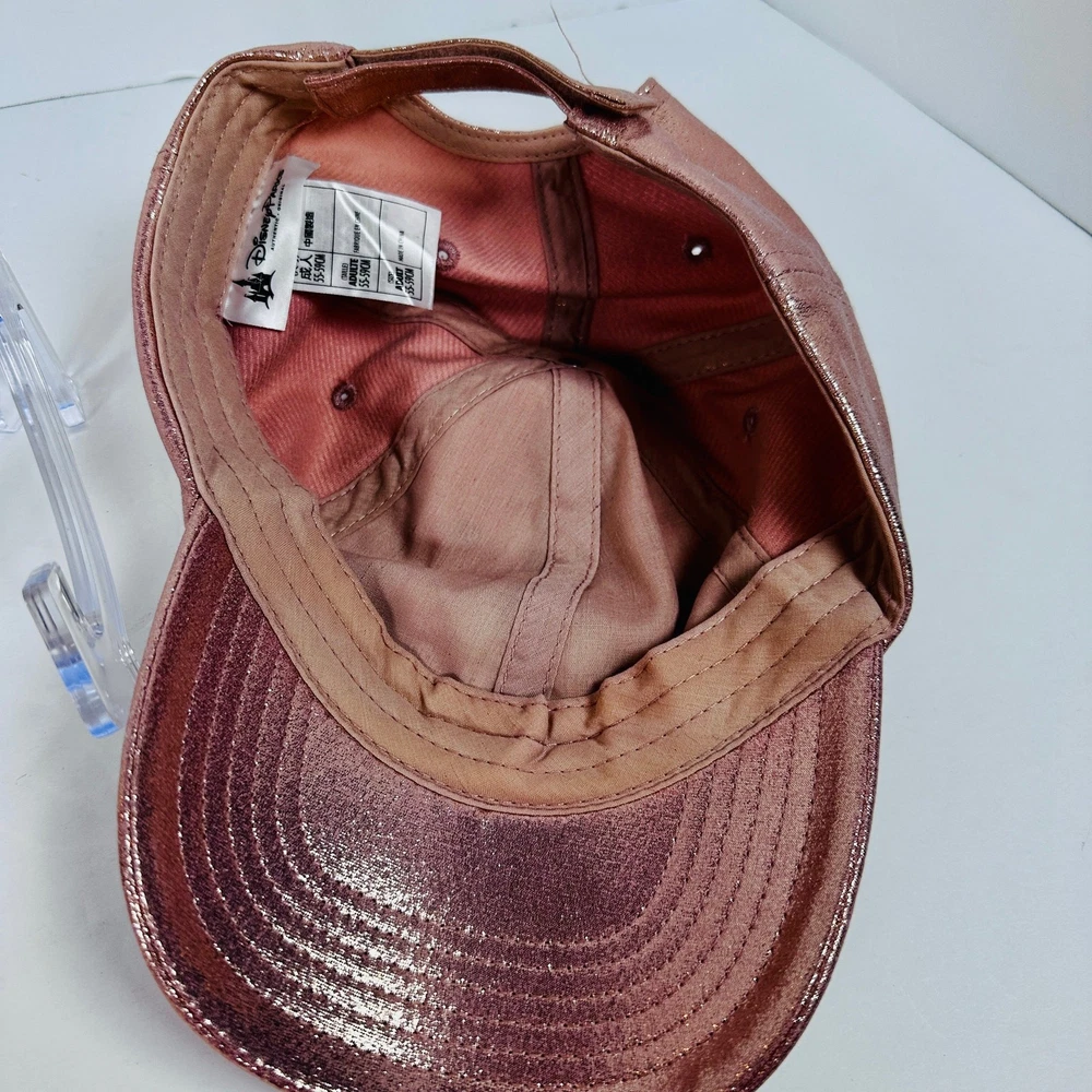 Hat is in great preloved condition. Please see all pictures for details. Originally purchased at Disneyworld. Color is Rose Gold. Will ship in a box to keep hat from being crushed.