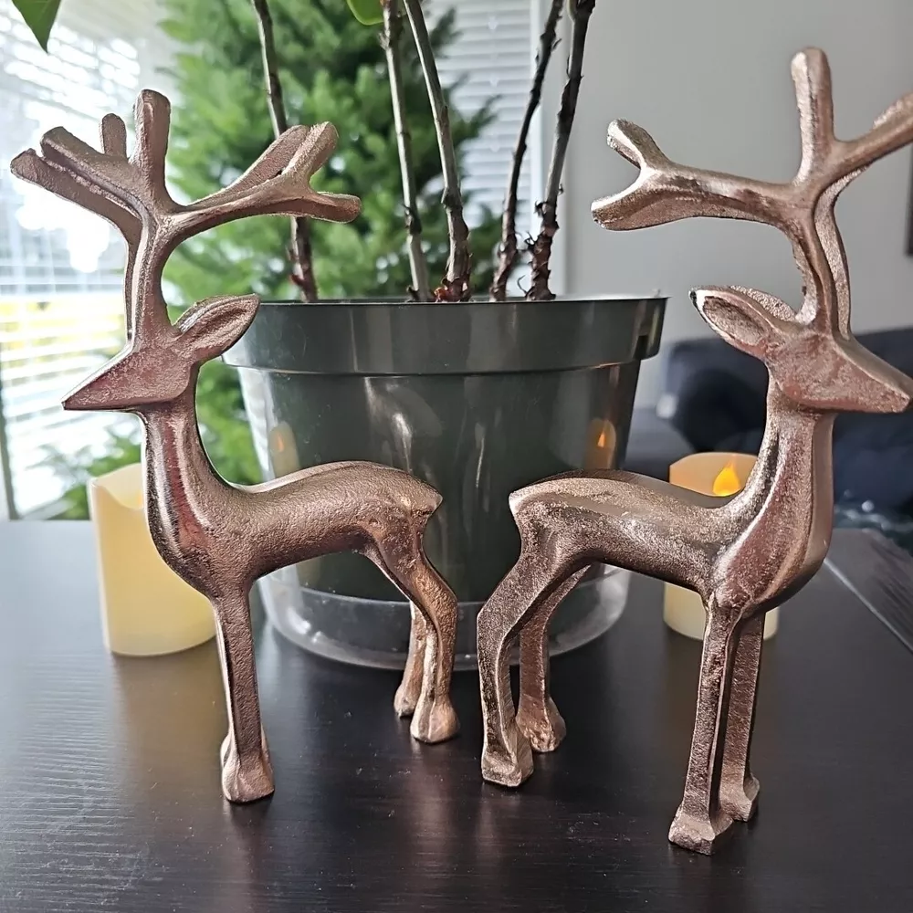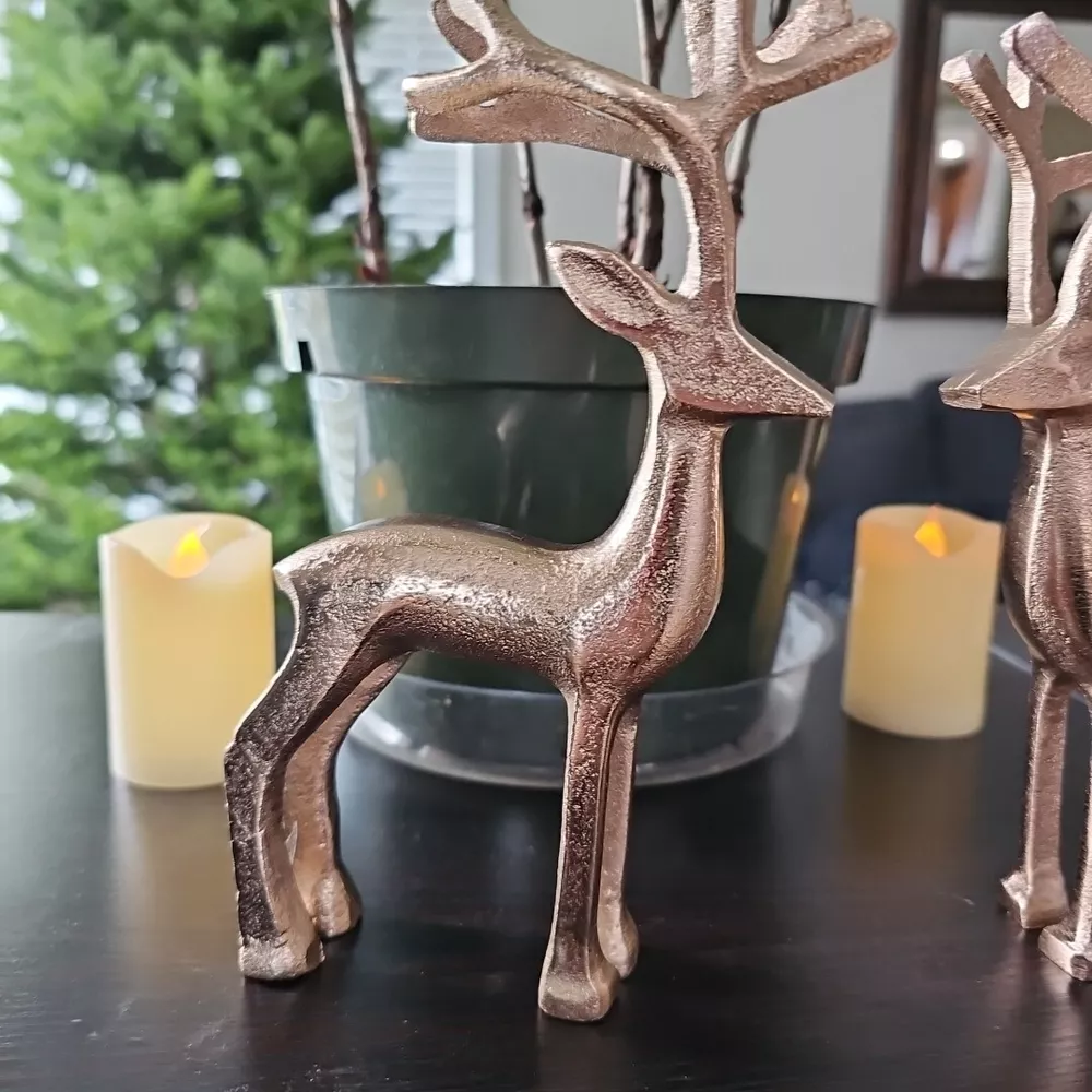Rose Gold Metal Reindeer Christmas Holiday Figurines Decor