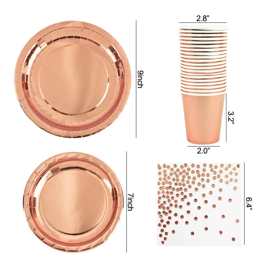Rose Gold Party Disposable Tableware Set Paper Plate Cup Kids Adult Birthday Wedding Bachelorette Party Decoration Baby Shower Party Supplies Extravaganza Throw a party to remember with our dazzling collection of party supplies! From vibrant decorations to festive tableware, we've got everything you need to make your celebration sparkle. Our high-quality products are designed to add a touch of magic to any occasion, ensuring your event is a hit with guests of all ages. Create unforgettable memories with our unique and stylish party supplies. Whether it's a birthday, holiday, or special gathering, our products are crafted to make your event stand out. Hand-picked items | High-Quality materials for a memorable celebration. Perfect for any theme, our party supplies are versatile and easy to mix and match, making your planning a breeze. Features & Collections Our Party Supplies Collection includes: Balloons: A variety of vibrant colors and sizes to brighten up your event. Streamers: Decorative lengths in multiple designs for a festive atmosphere. Tableware: Plates, cups, napkins, and utensils, all designed to match your party theme. Decorations: From banners to centerpieces, we have everything you need to set the scene. Confetti: Add some sparkle with our colorful confetti options. Party Hats: Fun and festive hats to get everyone in the party mood. Invitations: Customizable invitations to set the tone for your event. Party Favors: Delight your guests with a variety of party favors and goodies. Lighting: Set the mood with string lights, lanterns, and more. Backdrops: Create the perfect photo opportunity with themed backdrops and props. Costumes: Fun costumes and accessories for themed parties. Games & Activities: Keep everyone entertained with a selection of party games and activities. Why choose our Party Supplies?Our products are durable, reusable, and crafted to add a festive touch to any celebration. Whether you’re planning a birthday bash, a wedding reception, or a holiday gathering, our party supplies will make your event unforgettable. Shipping Standard Shipping: Enjoy low-cost, standard shipping on all US orders. Expedited Shipping: Need it sooner? Expedited shipping options are available for faster delivery. International Shipping: All imported orders are shipped Express with delivery times as soon as 6-10 business days. Shipping costs are non-refundable, unless the return is due to our error. Returns Easy Returns: We accept returns within 30 days of purchase. Items must be in their original condition for a full refund or exchange. Refund Process: Refunds are processed promptly upon return inspection. Please note that shipping costs are non-refundable, unless the return is due to our error. Party Themes & Ideas Theme Description New Year's Eve Celebrate the new year with glittering decorations, champagne toasts, and a countdown to midnight. Valentine's Day Spread the love with romantic decorations, heart-shaped treats, and a cozy atmosphere. St. Patrick's Day Go green with shamrock decorations, Irish-themed tableware, and festive drinks. Fourth of July Celebrate Independence Day with red, white, and blue decorations, fireworks, and a patriotic BBQ. Halloween Get spooky with haunted house decorations, costume contests, and themed treats. Thanksgiving Give thanks with autumn-themed decorations, a bountiful feast, and family gatherings. Christmas Celebrate the holiday season with festive decorations, a Christmas tree, and holiday cheer. Easter Host an egg-cellent Easter party with pastel decorations, egg hunts, and springtime treats. Mother's Day Show appreciation with elegant decorations, flower arrangements, and a special brunch. Father's Day Celebrate dad with a BBQ, sports-themed decorations, and fun activities. Memorial Day Honor the fallen with patriotic decorations, a commemorative ceremony, and a family gathering. Labor Day Enjoy a relaxing end-of-summer celebration with outdoor decorations, BBQs, and games. Birthday Party Make every birthday special with themed decorations, party favors, and fun activities for all ages. Wedding Celebrate love with elegant decorations, beautiful centerpieces, and personalized touches for an unforgettable day. Baby Shower Welcome the new arrival with adorable decorations, themed games, and sweet treats for the parents-to-be. Graduation Party Celebrate academic achievements with themed decorations, congratulatory banners, and a festive atmosphere. Anniversary Commemorate special milestones with elegant decorations, memorable gifts, and a celebratory ambiance. Retirement Party Celebrate a career well-spent with themed decorations, congratulatory messages, and a relaxed atmosphere. Engagement Party Celebrate the happy couple with elegant decorations, heartfelt toasts, and a joyful atmosphere. Housewarming Party Welcome friends and family to your new home with themed decorations, guided tours, and a cozy atmosphere. Back to School Party Prepare for the new school year with themed decorations, school supply giveaways, and fun activities. Sports-Themed Party Celebrate your favorite team with themed decorations, game-day snacks, and spirited activities. Stainless-Steel Jewelry Party Supplies Rose Gold Party Disposable Tableware Set Paper Plate Cup Kids Adult Birthday Wedding Bachelorette Party Decoration Baby Shower Party Supplies Extravaganza Throw a party to remember with our dazzling collection of party supplies! From vibrant decorations to festive tableware, we've got everything you need to make your celebration sparkle. Our high-quality products are designed to add a touch of magic to any occasion, ensuring your event is a hit with guests of all ages. Create unforgettable memories with our unique and stylish party supplies. Whether it's a birthday, holiday, or special gathering, our products are crafted to make your event stand out. Hand-picked items | High-Quality materials for a memorable celebration. Perfect for any theme, our party supplies a