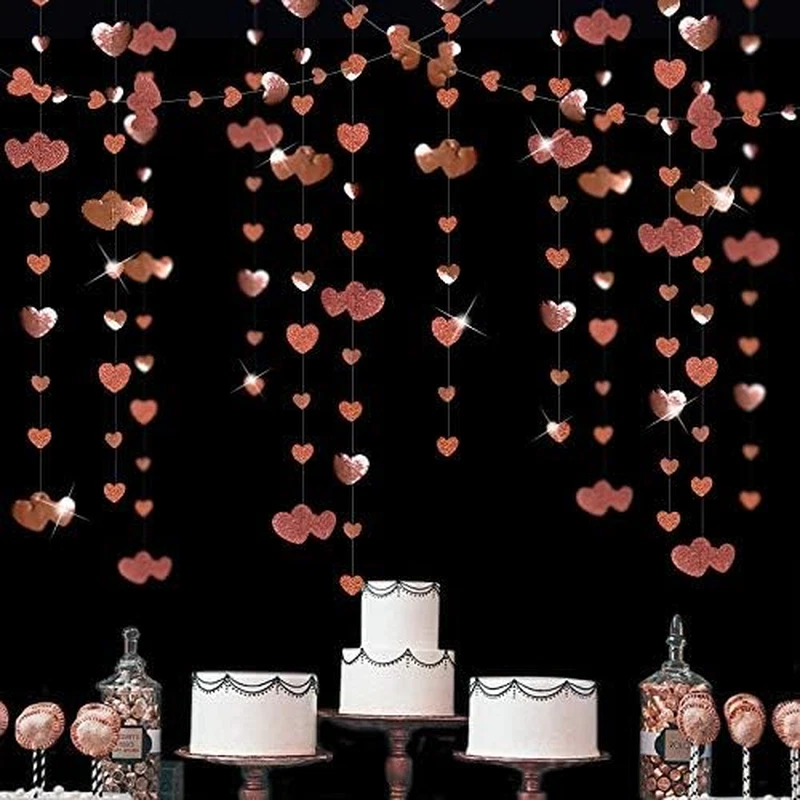 Package Contains- 4 packs of rose gold heart party decoration garland,each string is 13 feet/ 4 meters. Environmental Material-Our rose gold garlands are made of two materials paper alternately.Double sided metallic paper and glitter paper,high quality with neat cut,strong,durable and reusable. Asymmetrical Style-1 sets will contain 2 different permutation of glitter and metallic paper.You can DIY crop to any length you want. Let your decor design more eye-catching. Using Occasion-Perfect for decorating any parties.such as wedding,baby shower,birthday,bachelorette,engagement,bridal shower,graduation ceremony,valentines day,anniversary,hen party rose gold party decoration and so on. Product Warranty and Customer Service-We provide 48-day money-back and 24-month warranty. So feel free to contact us if you have any question. Product Description Our Rose Gold Party Decorations Heart Garland Kit Includes: 4 packs of rose gold glitter & metallic heart garland Dimension: Each string of the rose gold heart garland is 13 feet/ 4 meters.Total length is 52 feet/ 16 meters. 已申请版权保护,请勿抄袭,否则后果自负! MULTIPLE OCCASION: Heart decorations Birthday decorations Wedding decorations Christmas decorations Hen party decorations Graduation decorations Anniversary decorations MULTIPLE OCCASION: Bachelorette decorations Baby shower decorations Mother's day decorations Bridal shower decorations Valentines day decorations Rose gold party decorations Engagement party decorations WARM-TIP: Unroll & unwrap garlands carefully. Due to delicate nature of thread, may tangle. There may be dimension errors to some degree due to manual measurement. There may be some slight differences between the color tone of the pictures and that of the actual items due to lighting effects, monitor's brightness and contrast settings, etc.