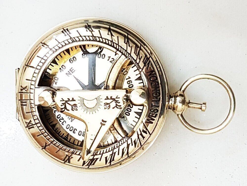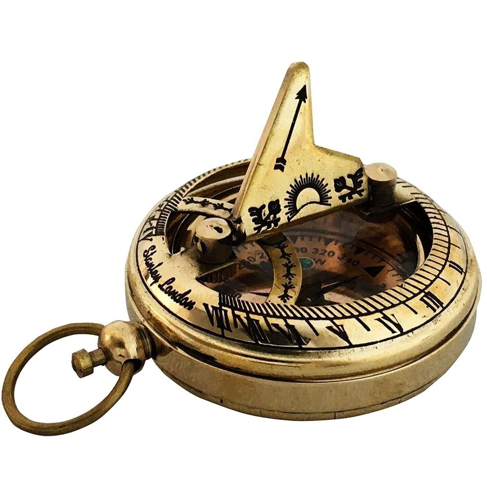 Product Features: Material: Brass, Glass Finish: Antique Total weight: .090 kg Size of sundial - 2.5 x 1.8 x .75 inch, 6.4 x 4.6 x 2 cm Look Photos For Actual Image Of Product. All Work is Hand Made.
