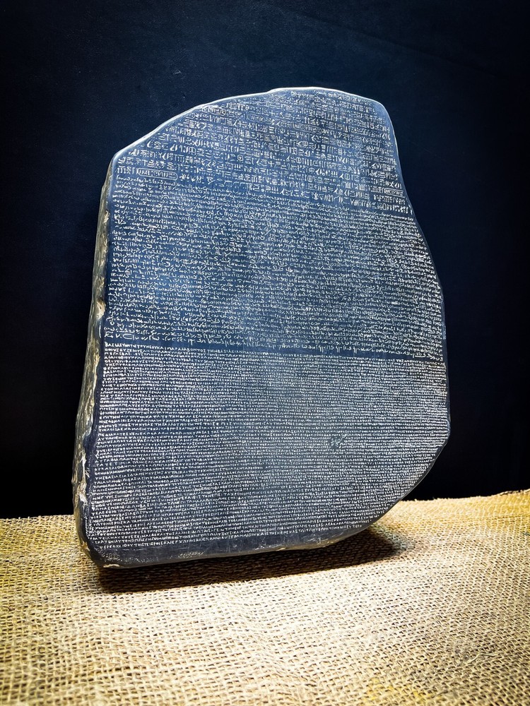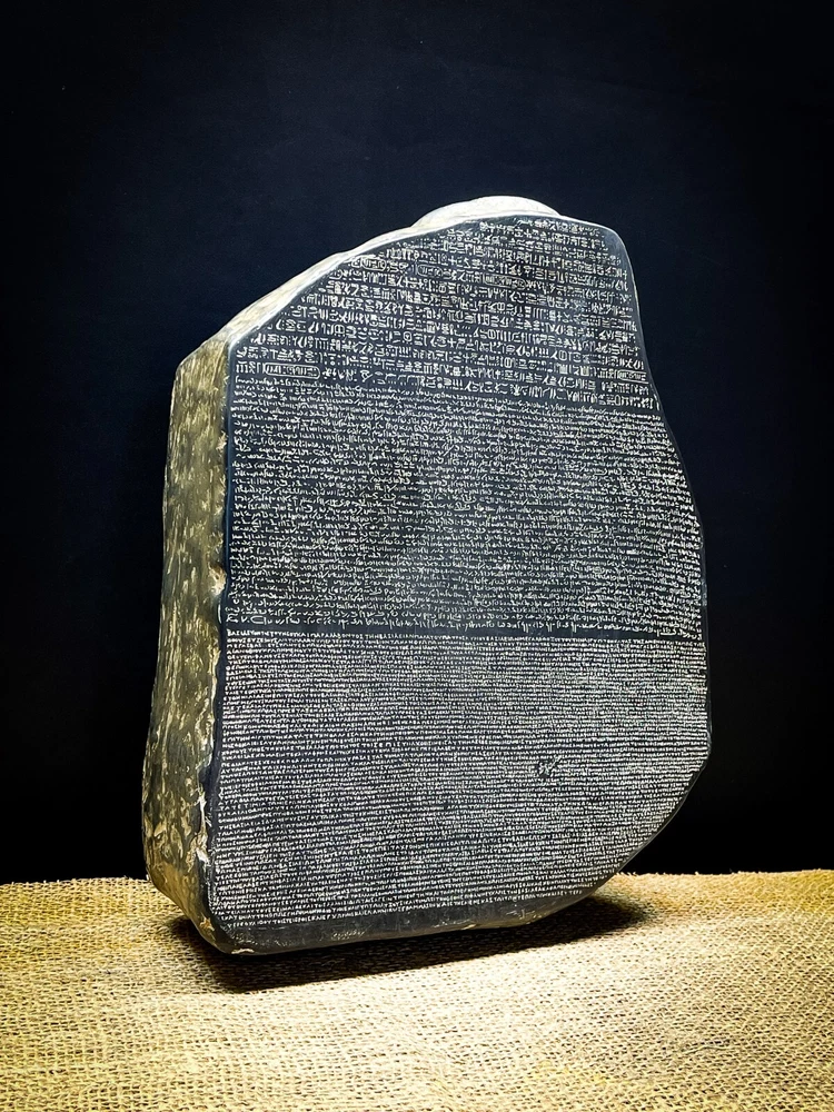 This item is 100% handmade with love and passion by the best sculptors of our family. Brand: EgyptologyStoreEG. Item Description: Rosetta Stone Musem Reproduction Sculpture Wall Relief Reproduction in Museum Original at the British Museum, London. 203 B.C. When the last temple was closed in the 6th century A.D., the skill of reading hieroglyphs was lost until the discovery of this slab of basalt stone found at Rosetta in the western delta in 1779. On the stone are three scripts. The bottom section is in Greek, the center in demotic (popular script originated in the XXVI dynasty, 700-600 B.C. and widely used for the next thousand years.), and the top in hieroglyphs. The stone was first set up in a temple. It was an elaborate "thank you" to the Greek ruler of Egypt, Ptolemy V, who reigned in the 2nd century B.C., for favors that he had given to the priests. The three scripts contained the same text, allowing the hieroglyphs to be translated. French archaeologist, Jean-Francois Champollion spent many years deciphering the symbols of the Rosetta stone. Champollion's work in the Rosetta stone was an important breakthrough in the translation of Egyptian hieroglyphs. Ancient sculpture replica from the original one, 100% Egyptian HAND MADE Made from Basalt Stone Height: 13 Inches Width: 10 Inches MADE IN EGYPT Payment: We are currently accepting many payment methods. Shipping: The items are shipped via DHL express company. Packaging: All the items ordered are 100% securely packaged with utmost efficiency and visually appealing appearance. Return Policy: You can return our product and get a full refund or exchange the product with another one, however the following conditions must be met: 1)Product must be returned within 14 days from the receival date. 2)In case an exchange is made, the shipping costs is paid. 3)Product must be returned in the same condition that it was received in. 4)Product must be returned in its original packaging. Feedback is highly appreciated :)