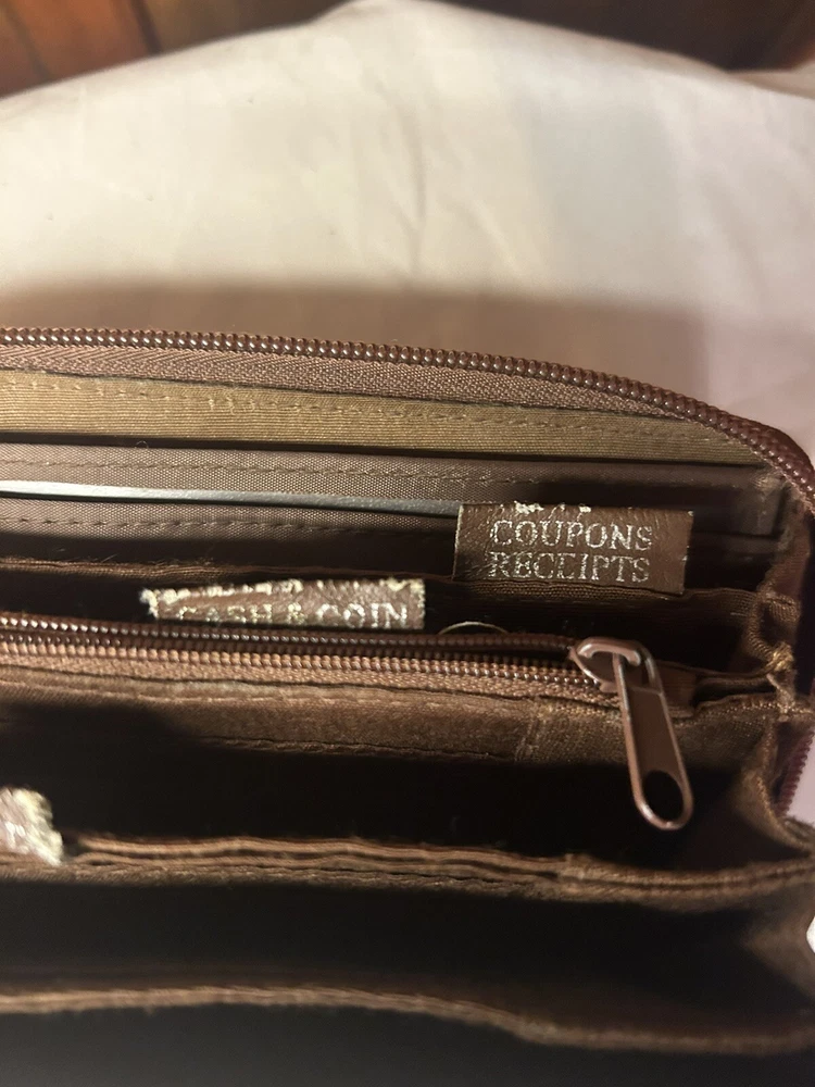 This Rossetti wallet and coupon organizer set is the perfect addition to any woman's accessories collection. Crafted with high-quality materials and designed with functionality in mind, this set is ideal for keeping essentials organized and easily accessible. The brown color adds a touch of elegance to any outfit, making it a versatile accessory that can be dressed up or down. The wallet and coupon organizer set is specifically designed for women and features the Rossetti brand name. With multiple compartments and pockets, it is perfect for storing cards, cash, and other essentials. Whether you're running errands or heading out for a night on the town, this set is a must-have.