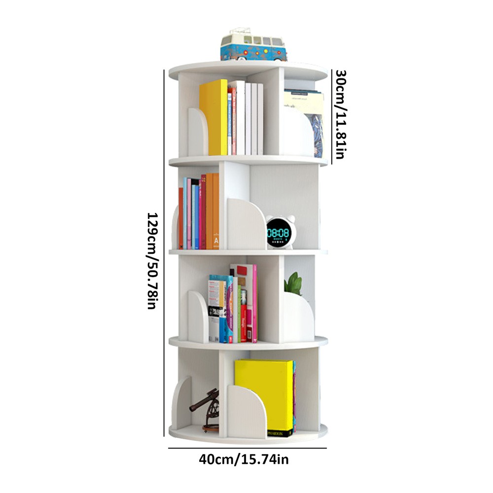 Suitable For: Books Country/Region of Manufacture: Unknown Item Height: 129.0 cm Year Manufactured: 2024 Assembly Required: Yes Maximum Weight per Shelf: 30 lb Features: Revolving Room: Home Office/Study Number of Shelves: 4 Color: White Type: 360 Rotating Bookshelf Material: PVC Brand: RELLY Mounting: Free Standing Additional Parts Required: No Item Weight: 13.29 kg Set Includes: Bookcase Number of Items in Set: 4 gtin13: Does not apply Style: Modern Item Length: 40.0 cm Original/Reproduction: Original Personalized: No Required Tools: Screwdriver Time Period Manufactured: 2020-Now Door Mechanism: Open Face UPC: Does not apply Finish: New Quality Item Width: 40.0 cm