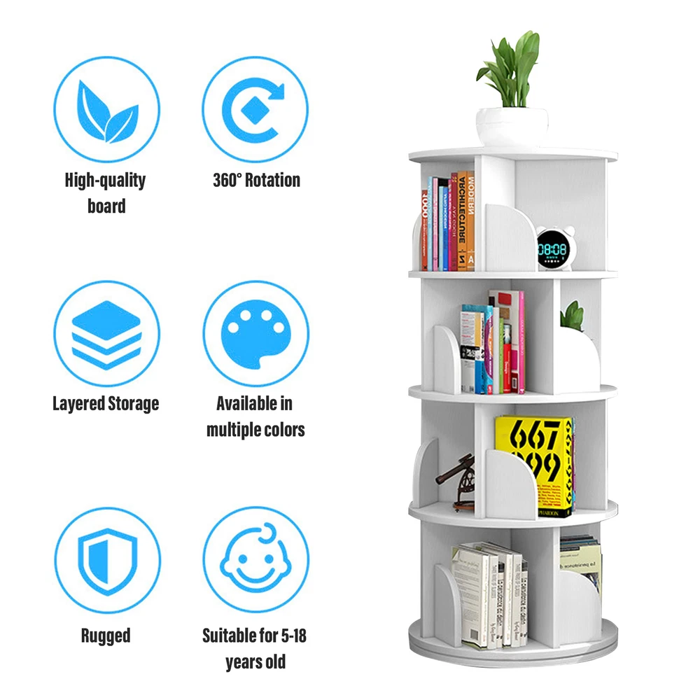 1. This rotating bookshelf is a game-changer for book lovers and collectors! The smooth 360-degree spin makes browsing effortless, while the four spacious tiers keep everything organized without taking up much room. It’s stylish, functional, and adds a modern touch to any space. Perfect for displaying books, decor, or even plants—love how it maximizes storage while looking sleek! Highly recommend for small spaces or anyone who wants easy access to their favorite reads.