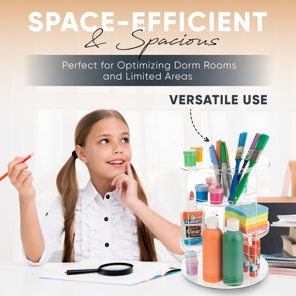 The innovative 360-Degree Rotating Makeup Organizer, a must-have addition to your beauty routine that effortlessly combines functionality, style, and organization. Say goodbye to the daily struggle of digging through cluttered drawers or hunting for your favorite cosmetics – this organizer revolutionizes the way you store and access your beauty essentials. With its sturdy construction and sleek design, our makeup organizer offers a spacious, clutter-free solution for all your makeup and skincare products. The 360-degree rotating base allows you to access every item with ease, while adjustable shelves accommodate products of various sizes, from lipsticks and brushes to skincare bottles and palettes. The organizer's minimalist aesthetic adds a touch of elegance to your vanity or bathroom, complementing any decor style. Assembly is a breeze, and you can have it set up in minutes to enjoy an organized beauty space. Say hello to efficiency and convenience, and experience the joy of having all your beauty products neatly at your fingertips. Upgrade your beauty routine with our 360-Degree Rotating Makeup Organizer today. LARGE STORAGE CAPACITY - This makeup spinning organizer offers generous storage space, allowing you to neatly organize a wide range of cosmetics and beauty products. EASY ASSEMBLY AND CUSTOMIZATION - The product is easy to assemble, and it offers the flexibility to customize the shelf heights to accommodate various product sizes and shapes. 360-DEGREE ROTATION - The lazy Susan-style bottom of the organizer allows for smooth 360-degree rotation, making it effortless to access your makeup and beauty items quickly. STURDY AND DURABLE - Designed for durability, this revolving makeup organizer is constructed to withstand the weight of various cosmetic products, providing a stable and reliable storage solution. SPACE-SAVING AND AESTHETIC APPEAL - In addition to its functionality, this makeup organizer is designed to enhance the visual appeal of your space by keeping clutter at bay and creating an organized and stylish look.