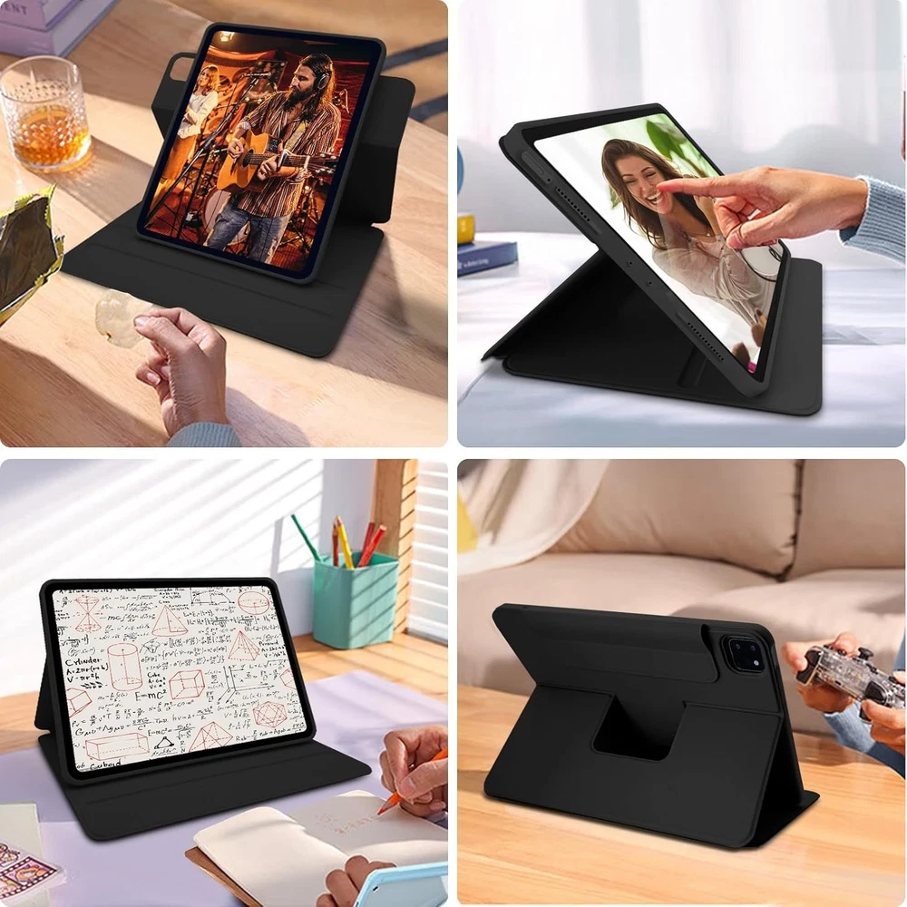 F eatures: 🌟 Elevate Your iPad Experience with Our Premium Protective Case Designed to blend style, functionality, and durability—this isn’t just a case, it’s a daily companion for your iPad. Whether you’re working on the go, binge-watching your favorite shows, or video calling loved ones, it checks every box for convenience and protection. ✨ Premium PU Leather: Sleek Style That Stays Pristine Crafted from high-grade PU leather, this case boasts a luxuriously smooth finish that complements your iPad’s modern design. Say goodbye to unsightly smudges, fingerprints, or accidental stains—even coffee spills or makeup marks wipe away in seconds with a damp cloth. Keep your iPad looking sleek and professional, day in and day out. 🔄 360° Rotating Stand: Perfect Angle for Every Moment No more struggling to prop up your iPad! The built-in 360-degree rotating stand lets you switch effortlessly between landscape and portrait modes, and lock into any angle that suits you: -Watch movies or TikTok hands-free at a comfortable viewing tilt -Type emails or take notes with a stable, laptop-like setup -Video call friends/family without holding your device -Read e-books or PDFs at a glare-free angleIdeal for home, office, travel, or even lazy weekends on the couch! 💤 Smart Auto Sleep/Wake: Save Battery, Simplify Use Forget fumbling with power buttons—this case does the work for you. When you close the lid, it automatically puts your iPad to sleep to preserve battery life. Open it back up, and your device wakes instantly, ready to use. Perfect for busy schedules—never waste time waiting for your iPad to turn on again. 🛡️ Reinforced Corner Protection: Durability You Can Trust Accidents happen, but your iPad doesn’t have to suffer. We’ve added reinforced, shock-absorbent corners to shield against drops, bumps, and scratches—whether you’re tossing it in a backpack, setting it on a desk, or using it on the move. Rest easy knowing your device is protected, without sacrificing style. 🎒 Slim & Lightweight: Protection Without the Bulk Who wants a bulky case weighing down their bag? This cover is ultra-slim and lightweight, so it slides easily into backpacks, purses, or briefcases. Use it for daily commutes, work trips, or weekend getaways—enjoy full protection without adding extra heft to your iPad. Package Included: 1 x Case Cover(not include ipad,screen protector,pencil) Please check back bottom of your iPad to find one of these model numbers Choose Model Name iPad Model Number Screen Size(inch ) For iPad Mini (6th 8.3"2021) A2567/A2568/A2569 8.3 For iPad Mini (A17 Pro) 2024 A2995/A2996 8.3 For iPad 5th Gen (9.7"2017) A1822/A1823 9.7 For iPad 6th Gen (9.7"2018) A1893/A1954 9.7 For iPad Air 1(9.7"2013) A1474/A1475/A1476 9.7 For iPad Air 2(9.7"2014) A1566/A1567 9.7 For iPad 7th Gen (10.2" 2019) A2197/A2198/A2199/A2200 10.2 For iPad 8th Gen (10.2" 2020) A2430/A2429/A2428/A2270 10.2 For iPad 9th Gen (10.2" 2021) A2602/A2603/A2604/A2605 10.2 For iPad 10th Gen (10.9" 2022) A2696/A2757/A2777 10.9 For iPad 11" (A16) 2025 A3354 / A3355 / A3356 11 For iPad Air 4(10.9"2020) A2316/A2324/A2325/A2072 10.9 For iPad Air 5(10.9"2022) A2588/A2589/A2591 10.9 For iPad Air 11 M2 (2024) A2902/A2903/A2904 11 For iPad Air 11 M3 (2025) A3266/A3267/A3270 11