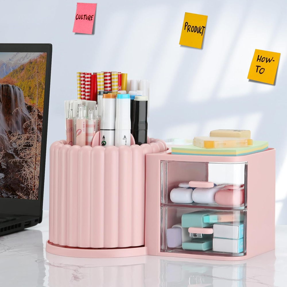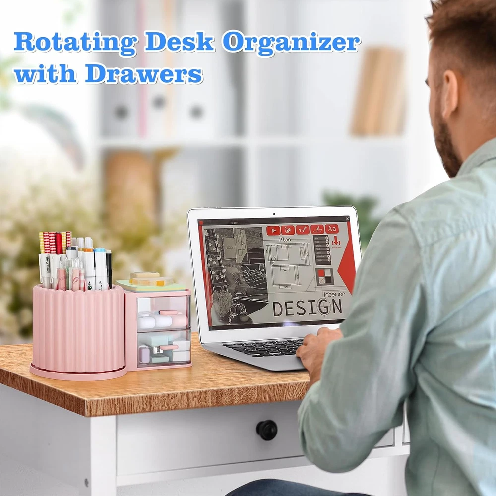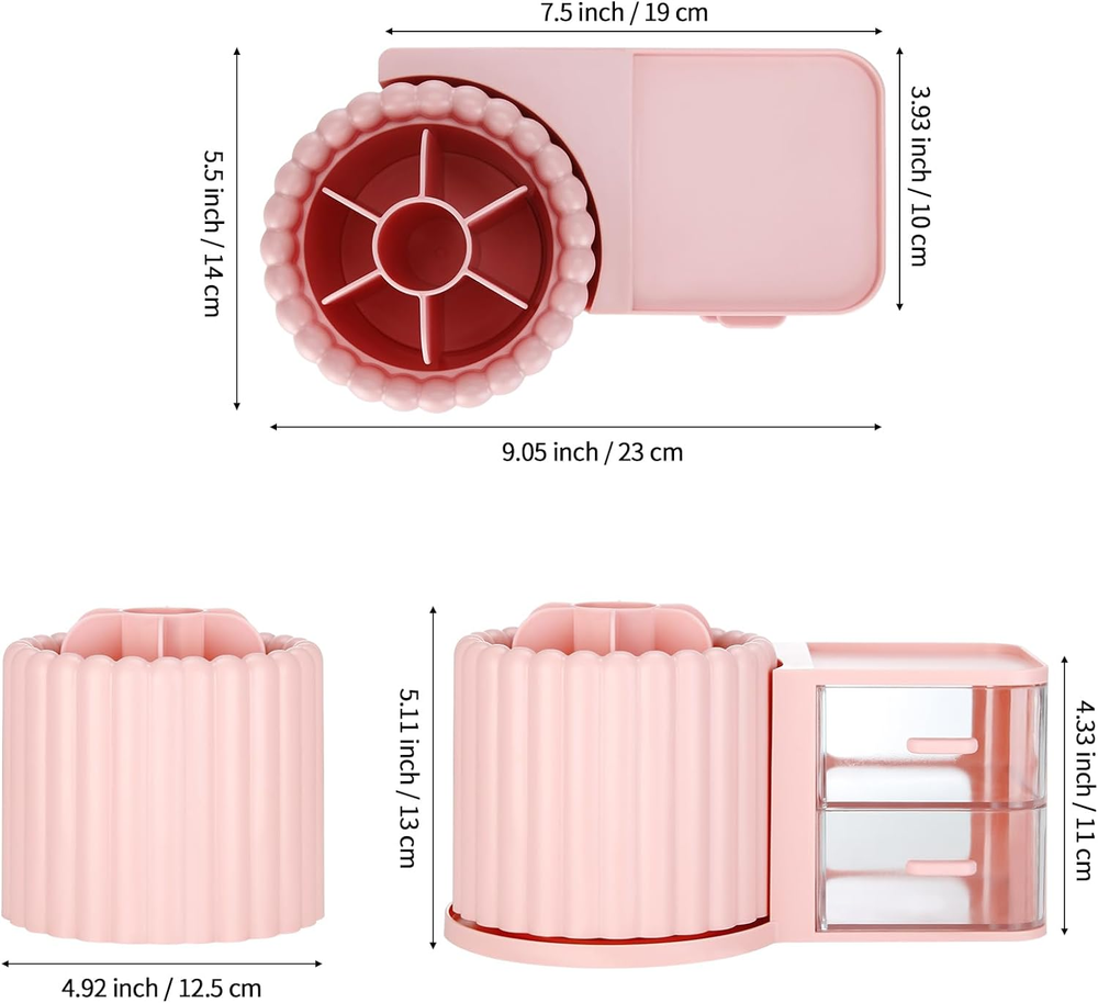Rotating Office Desk Organizers and Accessories with 2 Drawer, Pencil Pen Marker Holder for Desk, Desktop Storage Organizers and Accessories for Office Home Art Supplies (Pink) HIGH QUALITY STATIONERY ORGANIZER- The desktop organizer is made of high quality thickened environmentally friendly and non-toxic ABS material, drop-proof and not easy to deform, smooth and burr-free edges. VERSATILE DESIGN - The desk pen organizer with 4 compartments, including 2 drawers, 1 rotating pen holder, 1 top shelf organizer , no assembly required. It has enough storage to allow for office supplies organization. Large capacity, multifunction help you arrange the desk accessories and stationaries clean and tidy. TIDY DESK, TIDY MIND - Use this desk organizer to tidy up your desk, improve your concentration, boost your effectiveness and reduce your daily stress. An organized desk is even good for your mental health! PERFECT SIZE - Approx. L×W×H: 9.05" × 5.5" × 5.11" / 23cm × 14cm × 13cm, 4 compartments , have enough storage space to organize all your daily used small items at home, school, and office. MULTI-FUNCTIONAL: This cute modern organizer box can hold all your pens, pencils, remote controls, glasses, sticky notes, makeups, cards, etc. You can also use this desktop caddy for organization of your end table, nightstand, vanity table and school desk Rotating Office Desk Organizers and Accessories Item model number Rotating Office Desk Organizers Unit Count 1.0 Count Batteries Required? No Number of Items 1 Part Number Rotating Office Desk Organizers Color Pink Product Dimensions 9.2"D x 4.7"W x 4.9"H Material Plastic Country of Origin China Mounting Type Tabletop Mount Number of Compartments 4 Item Weight 1.41 pounds Shape Rectangular Special Features Dustproof, 360 Rotation Special Feature Dustproof, 360 Rotation Specific Uses For Product Stationery Included Components Desk Organizers and Accessories, Drawer, Pencil Pen Marker Holder Shipping Fast shipping is very important for us. Our standard US shipping service is FREE. Your order will be shipped within 2-3 business days upon full payment received. Your order will be delivered within 2-3 business days after the handling time. We only ship to the confirmed PayPal address. We reserve the right to cancel any order for any reason at any time. We are not responsible for undeliverable addresses. Returns and payment We offer a 30 days return policy from checkout winning date. We allow only PayPal as payment method FeedBack Your feedback very important to us, after you get your package and you are satisfied with our service please leave us positive feedback If you have any problem with your order / any questions please before leave any type of feedback For any questions, using eBay contact system Please visit our eBay store to check out other items for sale! Thank you for shopping at our store.