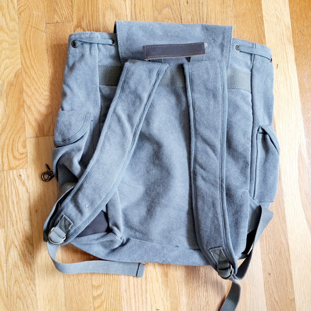 This Rothco Jeep Flip Flop Canvas Backpack Rucksack is the perfect companion for outdoor adventures. With its rugged design, it can withstand any weather conditions and is made of durable canvas material. The backpack features a buckle closure and padded adjustable straps for comfortable carrying. It also includes several compartments such as water bottle side pockets, inner pockets, and is designed with a large size for unisex adults. The backpack's gray color and outdoor rugged theme make it the perfect accessory for any travel occasion. Handle/strap material is made of a combination of canvas, leather, and cotton for added durability.
