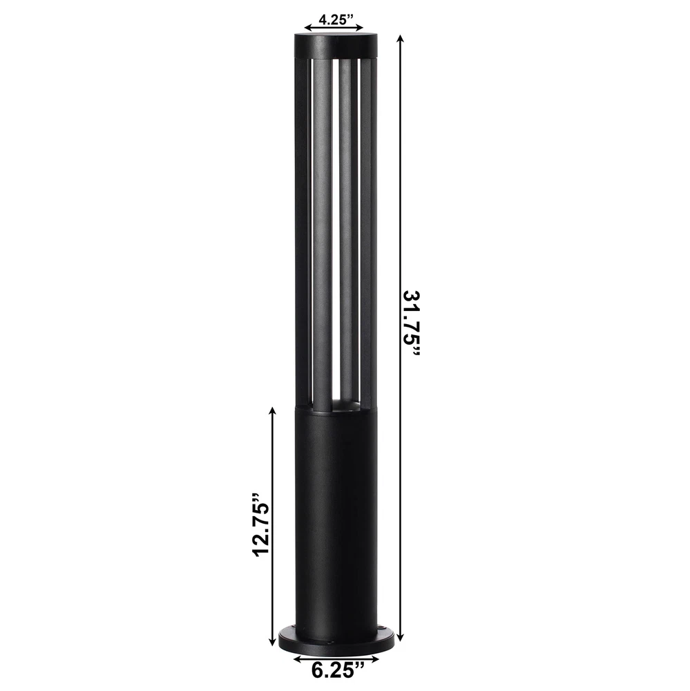 Add an elegant touch and a beautiful artistic design to your outdoor living with this modern bollard light. Composed of thickened die-cast aluminum structure material, Upgraded IP65 waterproof and rustproof. This outdoor black bollard light will brighten up your garden, patio, pathway, courtyard, or driveway. SIZE: 6.25" Dia. x 31.75" H IP65 WATERPROOF: Upgraded IP65 waterproof and rustproof and thickened die-cast aluminum structure material MODERN DESIGN: Adds an elegant touch and a beautiful artistic design outdoors MULTI USE: Perfect for residential or commercial areas such as garden, pathway, courtyard or driveway EASY INSTALLATION: Apply this light fixture with ease, all mounting hardware needed is included