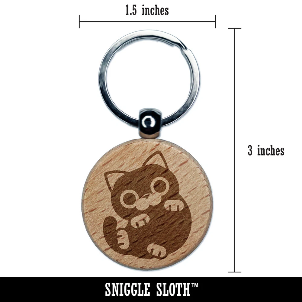 Round Cat Playful Engraved Wood Round Keychain Tag Charm