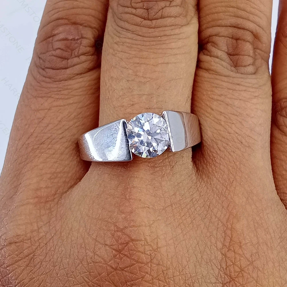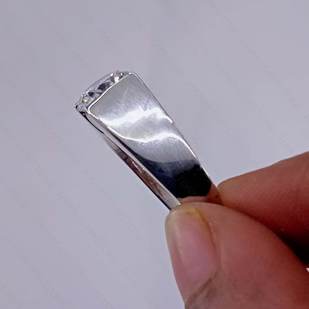 $ 74.042Ct Round Cut Natural Moissanite Set 14K White Gold Over Men's Wedding Ring Band