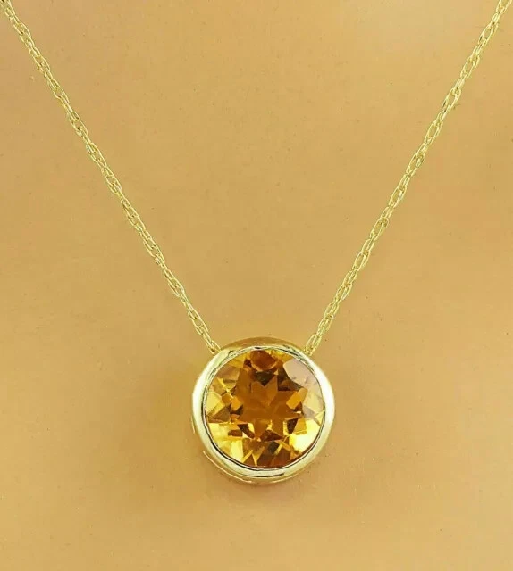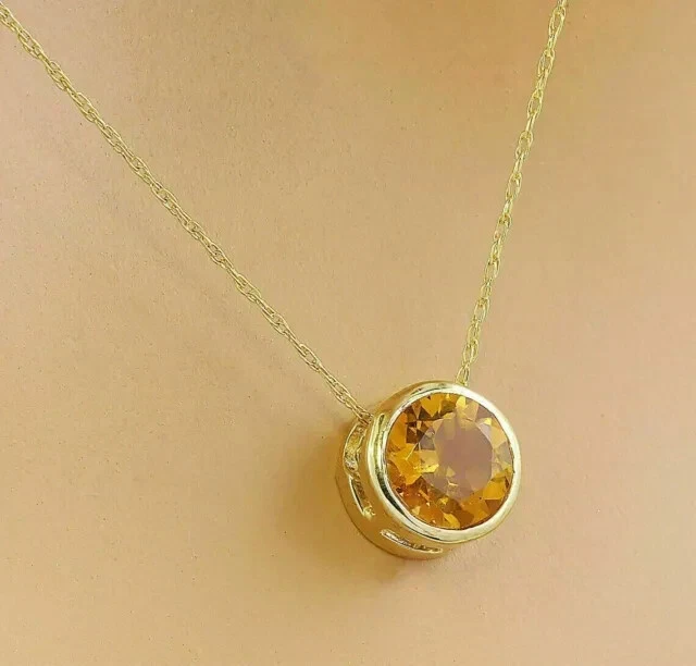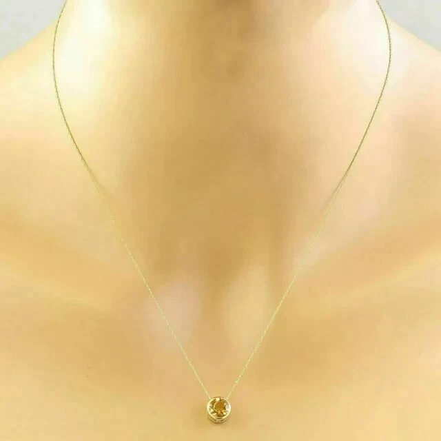 Round Cut Simulated Citrine Solitaire Pendant 14K Yellow Gold Plated with Chain