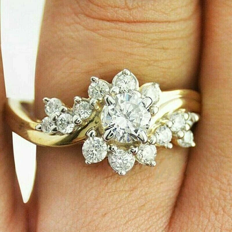 Round Cut Simulated Diamond Gorgeous Engagement Band Ring 14k Yellow Gold Plated