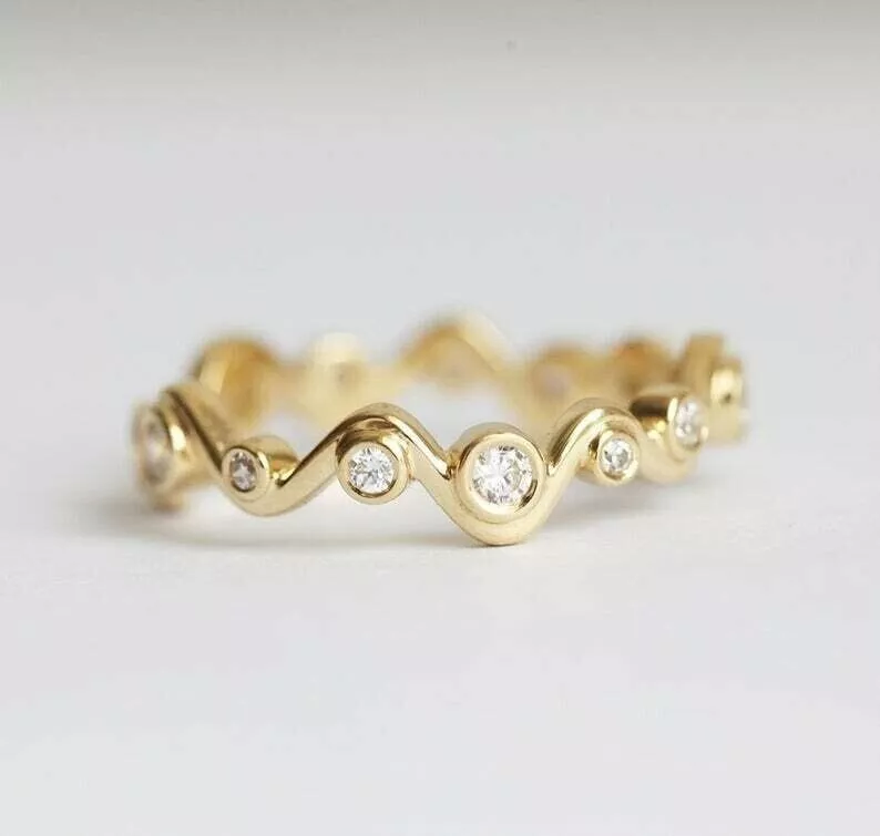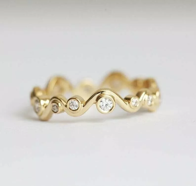 Round Cut Simulated Diamond Gorgeous Eternity Band Ring 14k Yellow Gold Plated