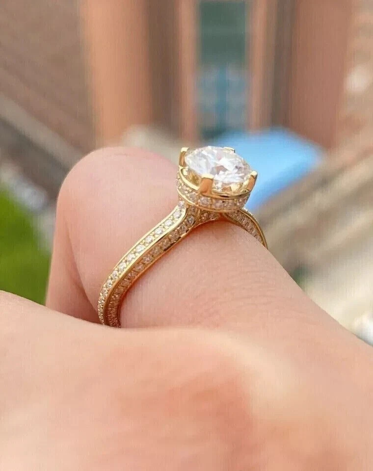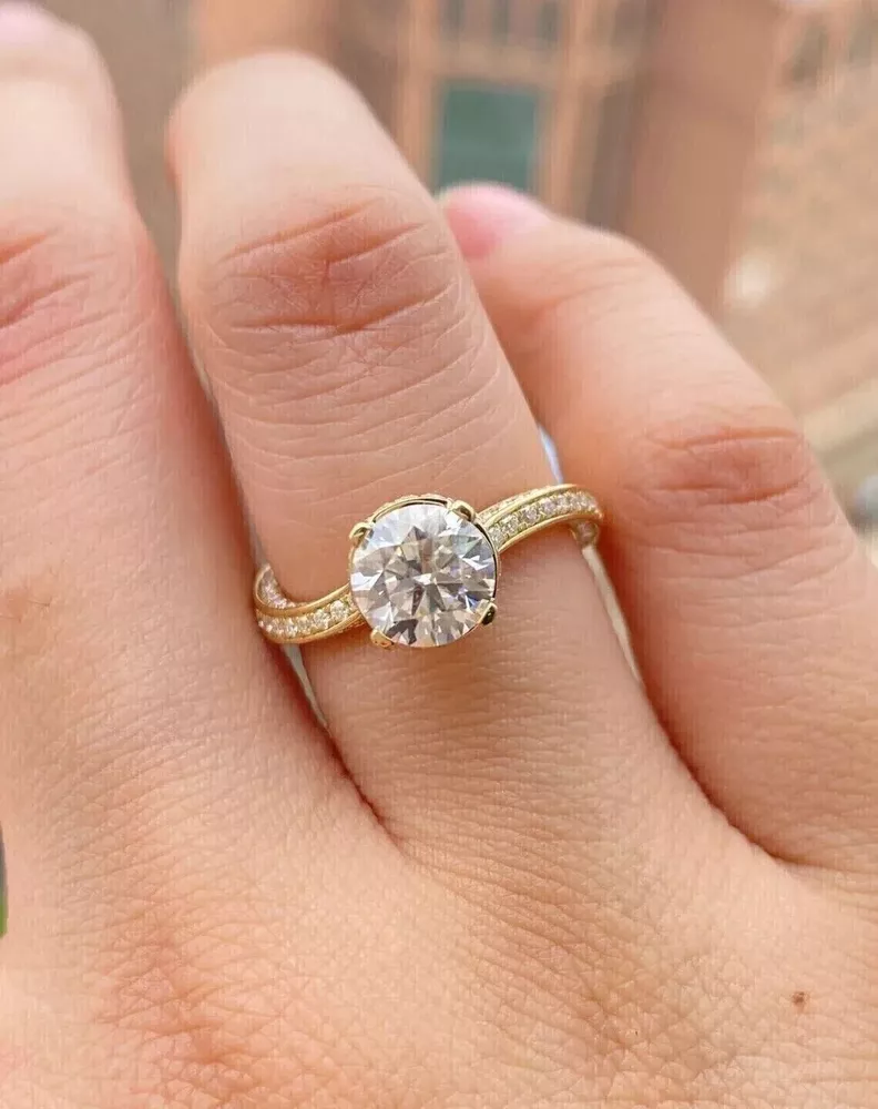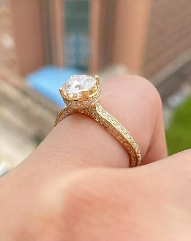 Round Cut Simulated Diamond Stunning Solitaire Band Ring 14k Yellow Gold Plated