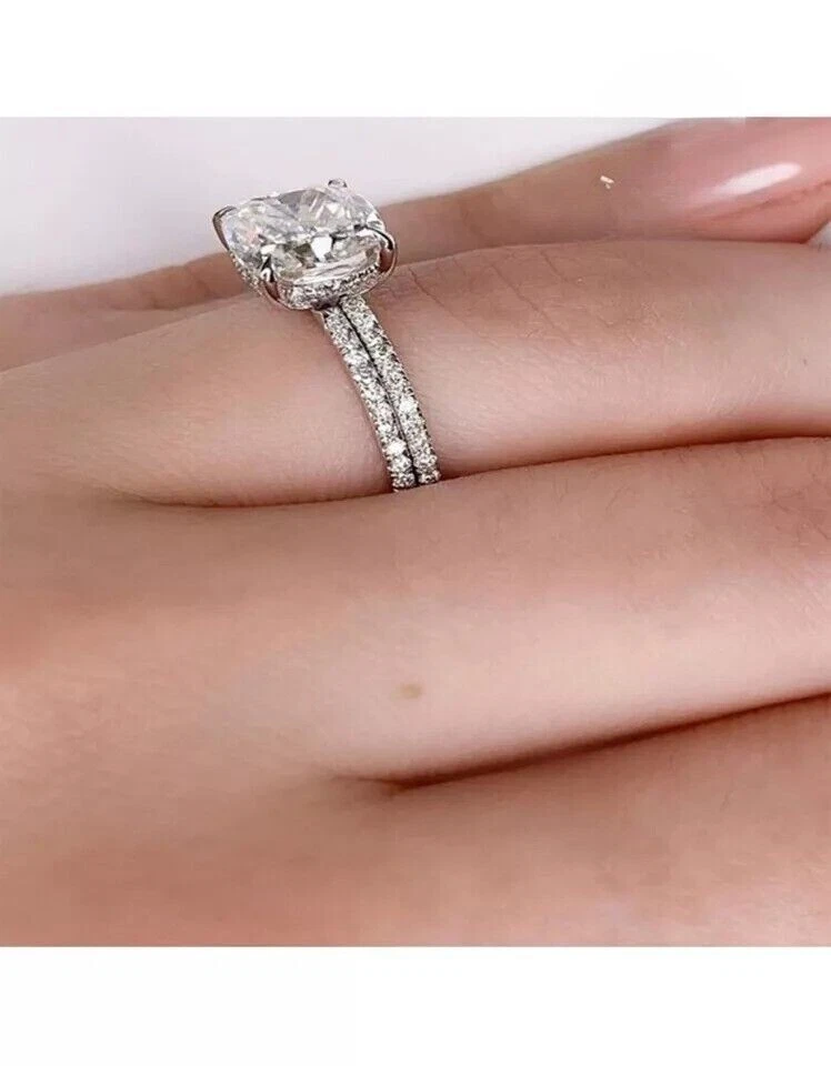Round Cut Simulated Diamond Women's Pretty Bridal Set Ring 14k White Gold Plated