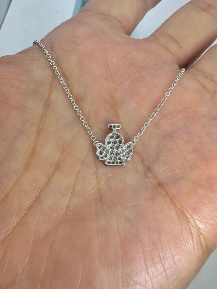 Round Cut Simulated Diamond Women's Stunning Angle Pendant 14K White Gold Plated