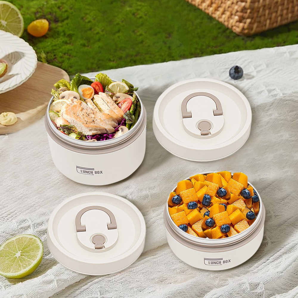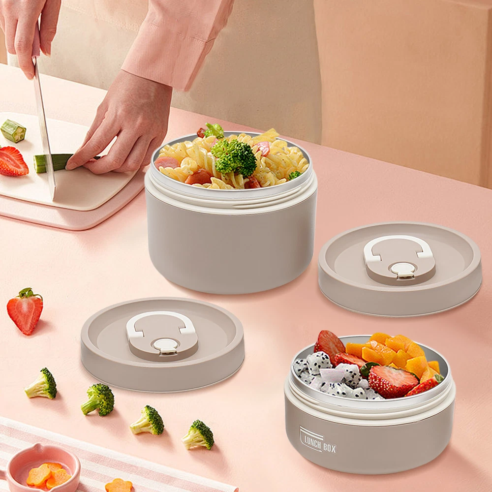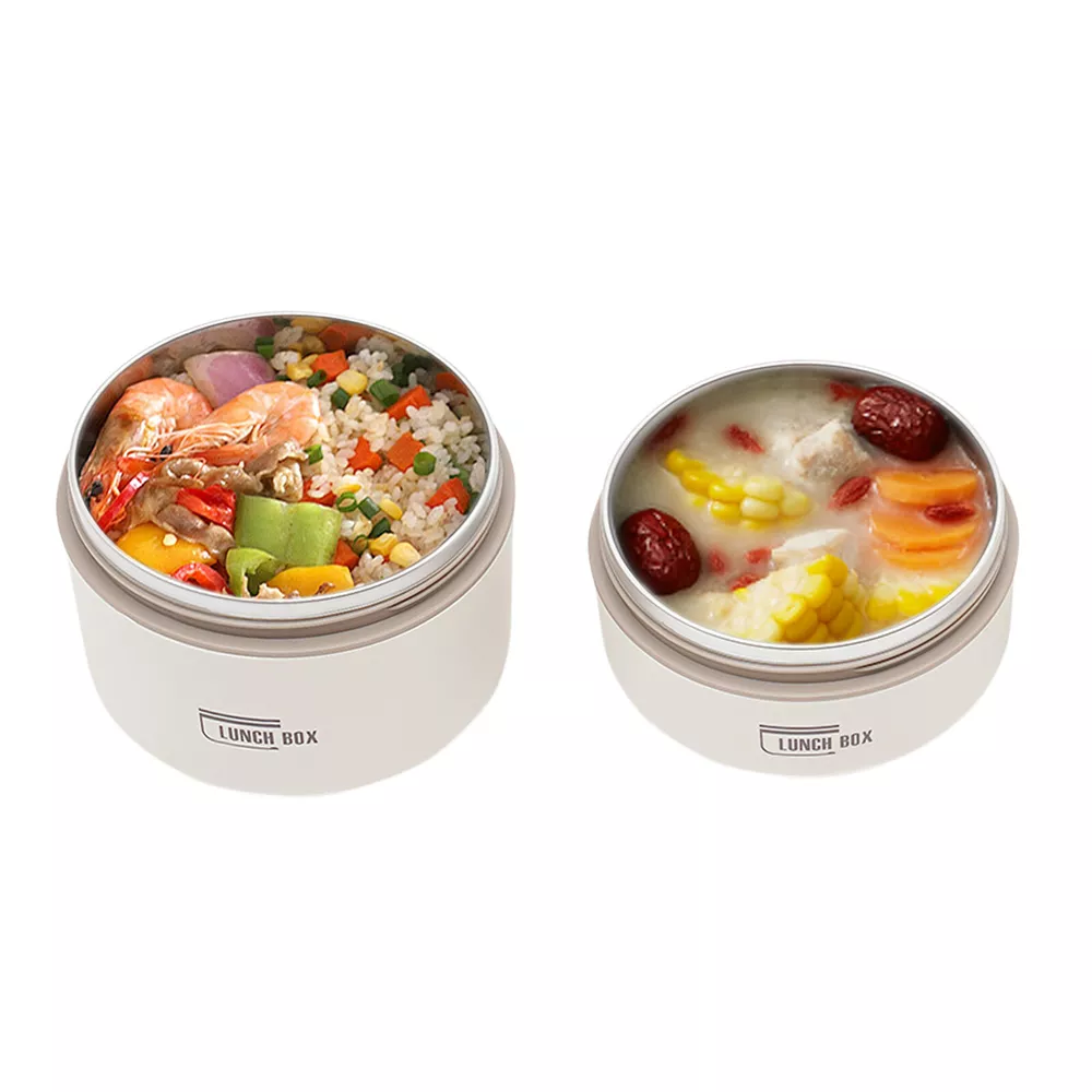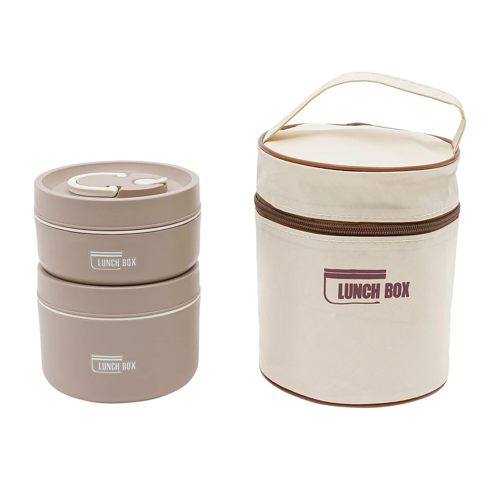 Application It enables you to prepare various foods for work, school, picnics, or camping, as well as nutritional meals for children or visiting patients. Specifications Color: Brown /Beige/Blue Shape: Round Style: Modern Number of Pieces: 2 Assembly Required: No Material: 304 Stainless Steel, PP, PU Foam Insulation Bag Material: Oxford Cloth, Pearl Cotton, PVC Aluminum Plated Film Heat Preservation Time(With the Insulation Bag): About 2.5-3 Hours(Food), 4 Hours(Boiled Water) Capacity: 620ml/0.56Qt (Bigger One), 420ml/ 0.38Qt (Smaller One) Gross Weight: 0.5kg/1.1 lbs Net Weight: 0.41kg/0.9 lbs Overall Product Size(D*H): 13.5*18cm/5.31*7.08 in Packaging Size: 19*14*14cm/7.48*5.51*5.51 in Package Included 2* Lunch Boxes 1* Insulation Bag Round Lunch Box Portable Insulated Lunch Container Set Stainless Steel Bento Box Description This lunch box is a good choice when you want to eat healthier or enjoy different foods more easily at work. It is made of high-quality materials, sturdy, safe, and durable. With a sealed lid, it is leak-proof , so you can use it confidently. Its lightweight, compact size and portable handles allow you to easily take it around. With it, you can prepare delicious food for your kids, family, and loved ones. Key Features Sturdy and Durable: The product is made of high-quality 304 stainless steel and PP, using a one-color silkscreen process, with high strength, wear resistance, non-toxic , and long service life Powerful Insulation: Its stainless steel inner liner, PU foam interlayer, and thermal insulation bag allow it to keep food warm for up to 2.5-3 hours and keep boiled water for 4 hours, so you don't have to worry about the food quickly becoming cold. Large Capacity: The bigger bowl can hold up to 0.56Qt and the smaller bowl can hold up to 0.38Qt of meals, catering for all your meal sizes. You can also feel free to mix and match, using different sizes of bowls to portion out rice, stir-fries, stews, fruits, and more to get a nutritionally balanced diet. Easy to Carry & Store: Its lightweight ( 0.9 lbs ), compact size ( 5.31*7.08 in ), and practical handles allow you to easily store and carry it to different places. You can keep your fitness and nutrition goals by using this item to take healthy meals and snacks wherever you go. Sealed and Spill-pro of : The sealed lid with silicone sealing ring and the design of spiral tightening not only prevents the soup from spilling but also enhances the heat preservation effect. Effortless Cleaning: The simple structure, removable lid, and smooth surface allow you to easily clean it with a wet wipe, water, and mild cleaning agent . Space-saving: Its stackable design allows you to place them on top of each other, saving you even more space. Beautiful Appearance: The pleasing brown tone with smooth lines and simple style make this item modern and fashionable. Nice Gift: This practical and beautiful product is a great holiday or housewarming gift for family, friends, and lovers so that they can enjoy a more convenient life. Details Ventilation Hole: It makes it easy to open the lid when the pressure inside the box is high. Double Zip Design: It is convenient for you to open and close the insulation bag . Application It enables you to prepare various foods for work, school, picnics, or camping, as well as nutritional meals for children or visiting patients. Specifications Color: Brown /Beige/Blue Shape: Round Style: Modern Number of Pieces: 2 Assembly Required: No Material: 304 Stainless Steel, PP, PU Foam Insulation Bag Material: Oxford Cloth, Pearl Cotton, PVC Aluminum Plated Film Heat Preservation Time(With the Insulation Bag): About 2.5-3 Hours(Food), 4 Hours(Boiled Water) Capacity: 620ml/0.56Qt (Bigger One), 420ml/ 0.38Qt (Smaller One) Gross Weight: 0.5kg/1.1 lbs Net Weight: 0.41kg/0.9 lbs Overall Product Size(D*H): 13.5*18cm/5.31*7.08 in Packaging Size: 19*14*14cm/7.48*5.51*5.51 in Package Included 2* Lunch Boxes 1* Insulation Bag Notes Please note that this product cannot be heated in a microwave oven and is also recommended not to be cleaned in a sterilizer or dishwasher. Please check the size carefully before ordering. Please wash the inside of the lunch box with a soft cloth and detergent diluted with warm water before first use. Please do not use alkaline bleach, metal cloth, chemical cloth, etc. Please clean it and keep it dry for a long time use. Please do not contact with salt-containing substances (or other acidic or alkaline substances) such as sauces and soups for a long time to avoid rusting. Please allow the slight color difference caused by the shooting light and 1-3cm error due to manual measurement, and make sure you do not mind before you order. Payment Delivery details Terms of sales About us Contact us Payment We accept ebay payment 。 Fees such as import duties, taxes are not included in the item price or shipping costs. These charges are the buyer's responsibility. Delivery details Shipping: 2-9 working days to: USA Terms of sales We maintain high standards of excellence and strive for hundred percent customer satisfaction. Feedback is very important to us. We hope that you contact us immediately before you give neutral or negative feedback, so that we can address your concerns. It is impossible to address issues if we do not know about them! About us Your satis faction is our ultimate goal. We work hard to earn your trust and future business. Our certified technicians have tested each item before shipping. The unit comes with 1 year limited warranty on all manufacturing defects. a) If you receive a defective item, you may return it or ask for a discount. Please contact us within 14 days after you receive the package. b) What you returned must be intact and in its original packaging as re? u. Customer is responsible for shipping costs of the returned item. c) We will cover the cost of shipping back t with the shipping rate indicated in the registration page. We will send you a new unit or refund the fu
