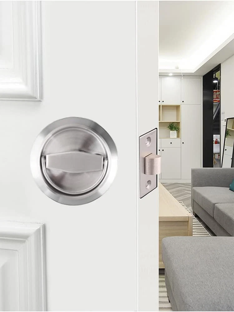 This pocket door lock is a sleek and practical upgrade! The smooth stainless steel finish looks modern, and the no-key design makes it super convenient for privacy spaces like bathrooms or bedrooms. Installation was quick, and it feels sturdy—no wobbling or loose parts. Perfect for sliding doors where you need secure but easy access. Highly recommend for anyone looking for a clean, keyless solution!