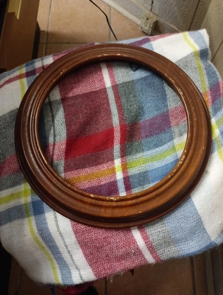 This round vintage picture frame is perfect for displaying your favorite 8.5 inch photo in style. Made of wood with a brown finish, this frame has a distressed look that adds character to any room. The frame is 10 inches in height and 8 inches in width, and is suitable for photos taken in the late 20th century (1970-1999). The frame is an original Van Hygana Smyth product and has a round orientation, making it a great addition to any decorative collection. This photo frame is perfect for collectors of unique and one-of-a-kind items. Get yours today and add a touch of vintage charm to your home decor.