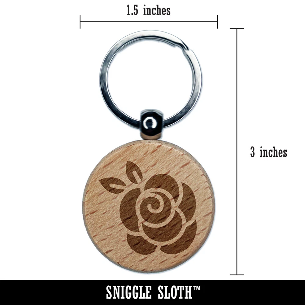 Rounded Rose Flower Engraved Wood Round Keychain Tag Charm