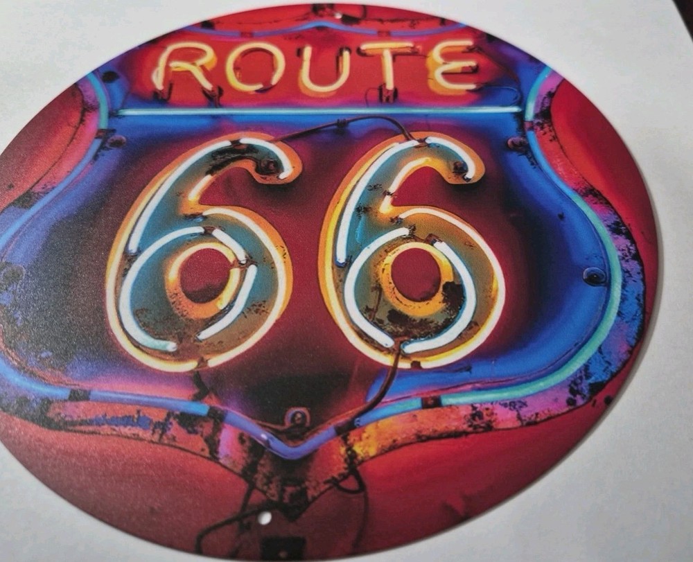 The Route 66 Metal Sign is an 8" decorative piece perfect for adding a touch of vintage charm to any home or space. With its classic design and durable metal construction, this sign is sure to be a stylish and lasting addition to your decor. Display it proudly on a wall or shelf to bring a piece of iconic Americana into your home.