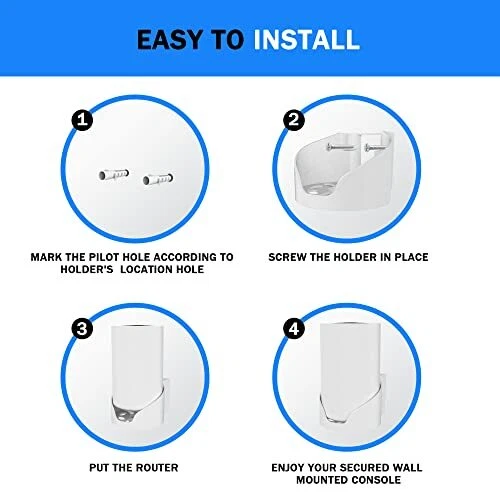 Return Policy Fast Delivery Trusted seller Router Shelf Wall Mount for Tp Link Deco X68 XE75 XE75 Pro AXE5400 Deco Mesh WiFi 6E WiFi Router Holder Stand Bracket Shelf Cable Organizer with Screw Mounting Kit (White-3pack) Product Description 【Professional WiFi Router Holder Mount?This is a router bracket compatible with Tp-Link Deco X68 XE75 XE75 Pro AXE5400 Deco Mesh Wifi 6 system, which can effectively store and organize your home wifi system, so that the router can obtain better data transmission range and reception effect. 【Hidden Cable Management Design?The bottom of this router holder is designed with a cable organizer and winder, which can store and organize excess power cords well, eliminating the troubles of wire tangling and sagging, and keeping the room clean and beautiful. 【Space Saving and Excellent Heat Radiation?The wall-mounted router bracket can well free up desktop or floor space and effectively save room space. This router wall mount has multiple opening vents on the bottom to provide excellent heat radiation performance for your home WiFi system to ensure your router stability and durability. 【Easy to Install and Portable?Router shelf wall mount for Tp-Link Deco X68 XE75 XE75 Pro AXE5400 Deco Mesh Wifi 6 system comes with 3 self-tapping screws and 3 expansion bolts, allowing you to easily and conveniently mount it on the wall. This router stand is lightweight and compact, making it easy to carry and store. 【Modern and Stylish】This wall mount bracket is modern, stylish, sturdy and durable. It is the perfect accessory for your room or office mesh system, perfectly matching the interior decoration. A great router organizer for family, friend, colleague, neighbor. Shipping Returns Payment Shipping Shipping is FREE to all addresses other than APO/PO boxes in the lower 48 states. All our stock ships from US-based warehouses. Shipped via USPS or UPS (depending on location and package weight) Unless stated otherwise, all orders will ship within 24-72 hours of your payment being processed. Check our feedback to see the great reviews of FAST shipping we offer. Returns Seller does not accept returns Payment We currently accept payment via eBay managed payments only. Once payment is cleared, we will dispatch your shipment within 1-3 business days. Please refer to the "Shipping" tab for more information regarding shipping speed to your destination.