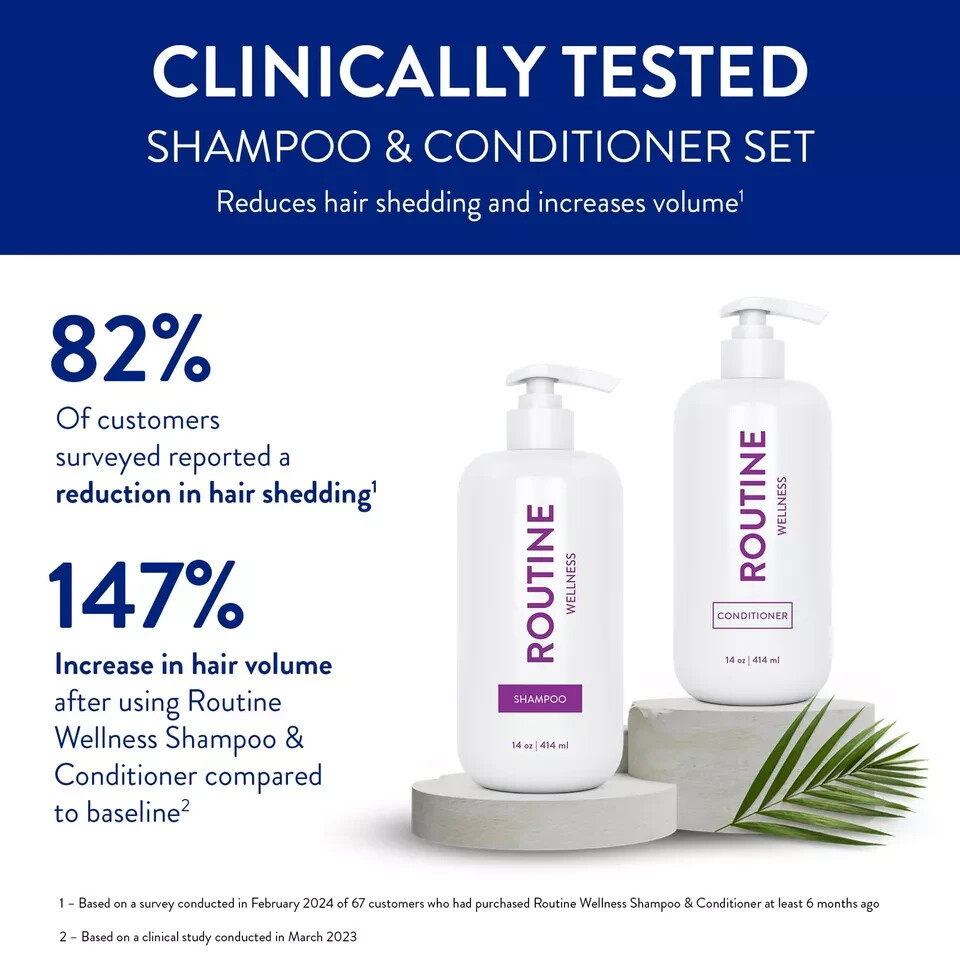 Routine Wellness Anti-Thinning Shampoo and Conditioner Set for Thinning Hair ... BIOTIN SHAMPOO AND CONDITIONER: Our biotin hair strengthening shampoo and conditioner set for women and men is designed to combat hair thinning. Enriched with biotin and saw palmetto oil (a DHT blocking ingredient), argan oil, nettle oil and other premium ingredients, our shampoo will provide you the essential hair vitamins for stronger, fuller-looking hair. ROUTINE WELLNESS SHAMPOO AND CONDITIONER SET: Infused with hair strengthening ingredients for women and men, Routine Wellness Shampoo and Conditioner reduces thinning caused by breakage, ensuring your hair feels stronger and fuller with our best shampoo and conditioner. SULFATE FREE & COLOR SAFE FOR THINNING HAIR: Preserve your hair color while nourishing each strand with our sulfate free shampoo and conditioner. This gentle yet effective formula is perfect for color treated hair, offering a safe choice for your hair strengthening product. HAIR LOSS TREATMENTS FOR WOMEN: Explore effective hair thinning treatments with our biotin shampoo for women and men. This hydrating shampoo and conditioner set is cruelty-free, sulfate free, vegan and contains no parabens, silicon, gluten, or SLS that could interfere with hair growth. HEAVENLY SCENTS: Shampoo and conditioner sets with delightful scents that leave your hair smelling fresh while deeply moisturizing and softening. Perfect for all hair types including dry hair, color treated hair, thin hair, damaged hair and normal hair. Shipping We offer FREE shipping on all orders! We ship within Three business days of payment, usually sooner. We use a selection of shipping services such as UPS, FedEx, USPS etc. We only ship to the lower 48 states, no APO/FPO addresses or PO Boxes allowed. Local pickups and combined shipping options are not provided at this time. Return You can return a product for up to 30 days from the date you purchased it. Any product you return must be in the same condition you received it and in the original packaging. Please keep the receipt. Payment We accept payment by any of the following methods: PayPal Please pay as soon as possible after winning an auction, as that will allow us to post your item to you sooner! Feedback Customer satisfaction is very important to us. If you have any problem with your order, please contact us and we will do our best to make you satisfied. Contact Us If you have any queries, please contact us via ebay. We usually respond within 24 hours on weekdays. Please visit our eBay store to check out other items for sale! Thank you for shopping at our store.