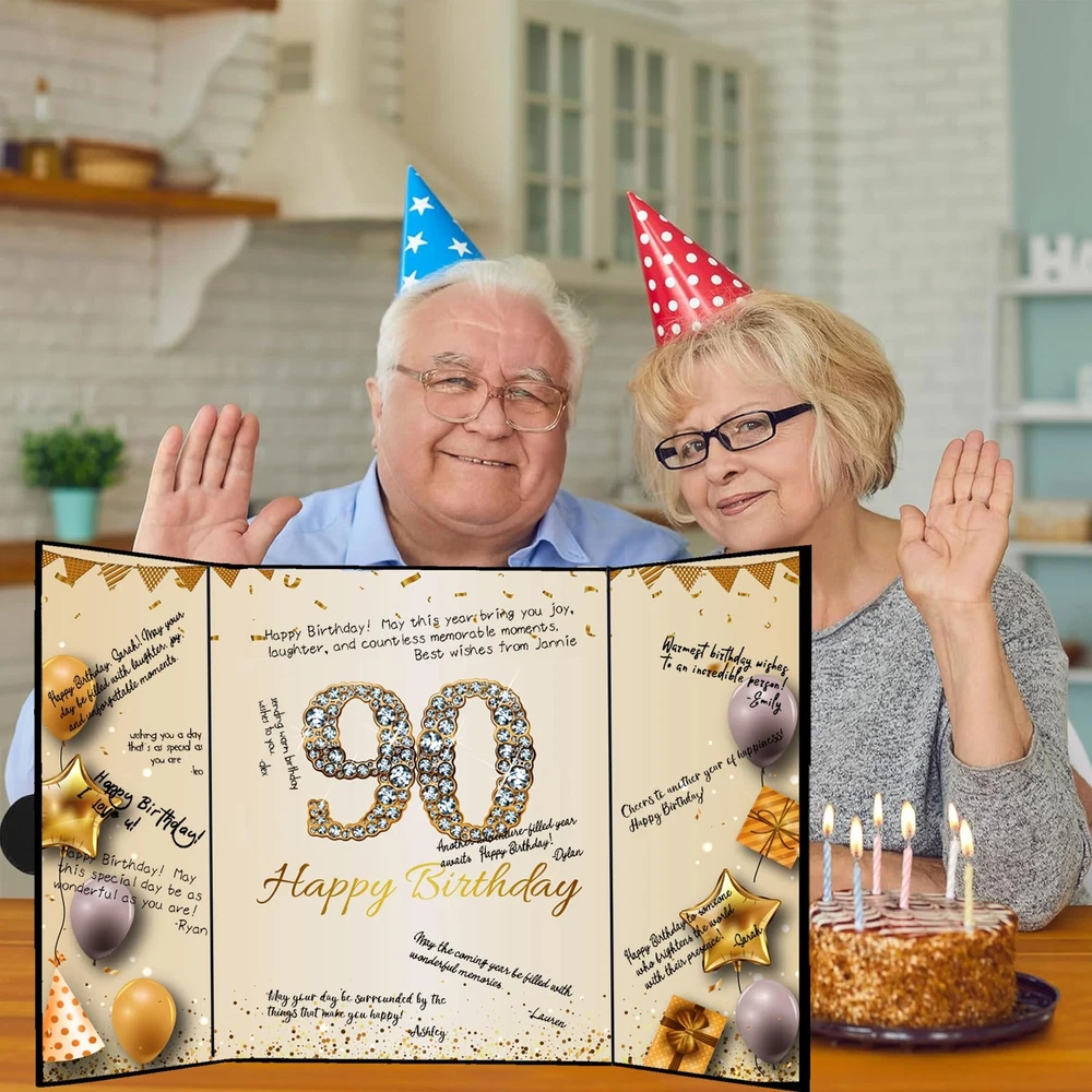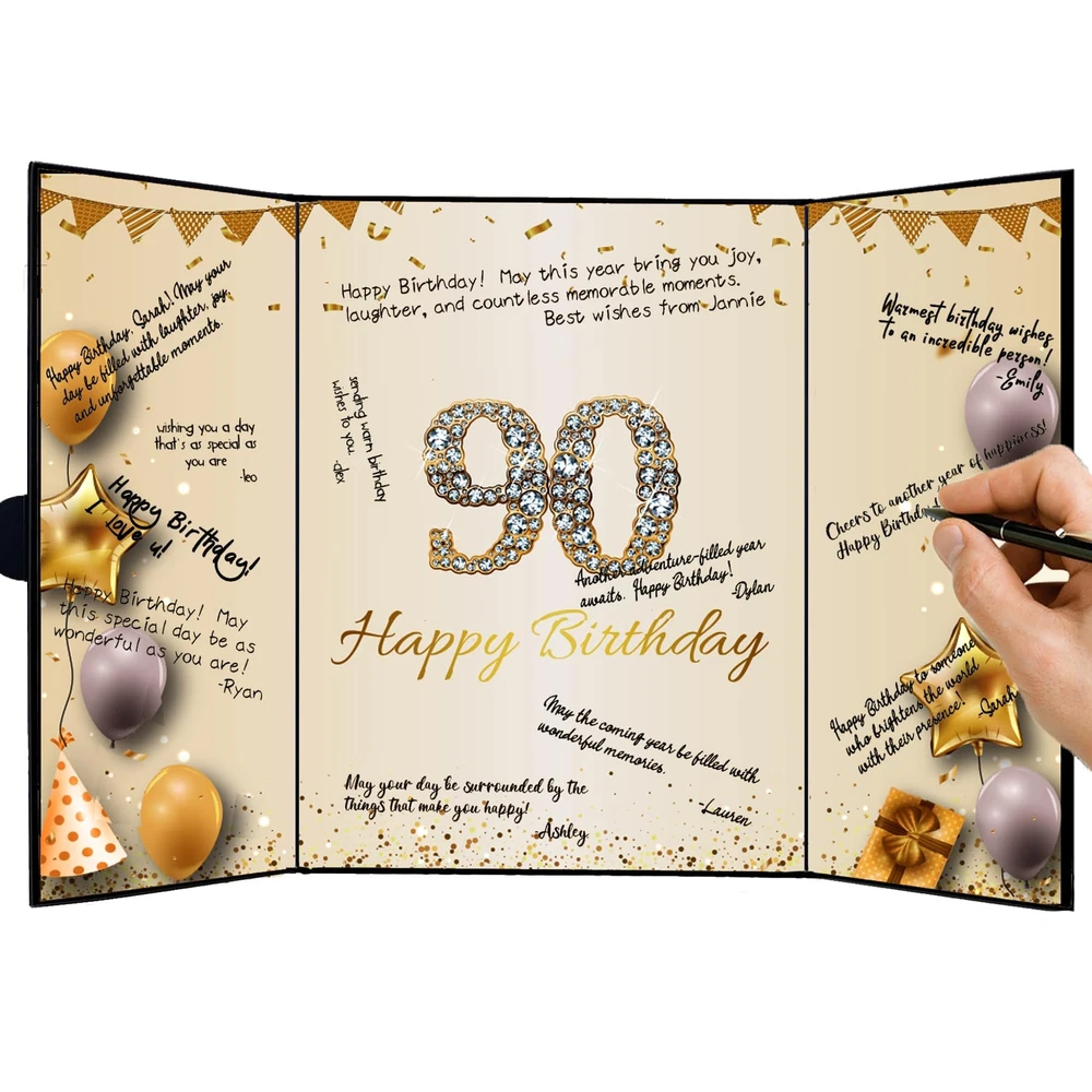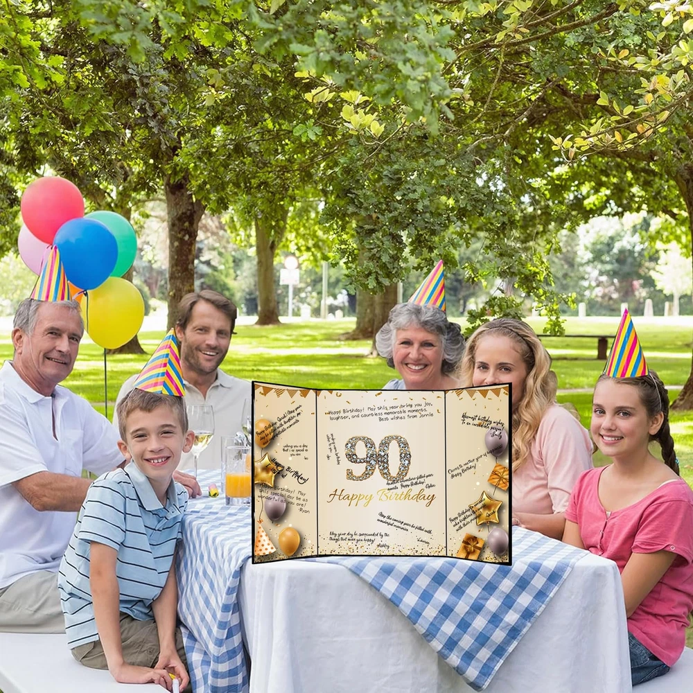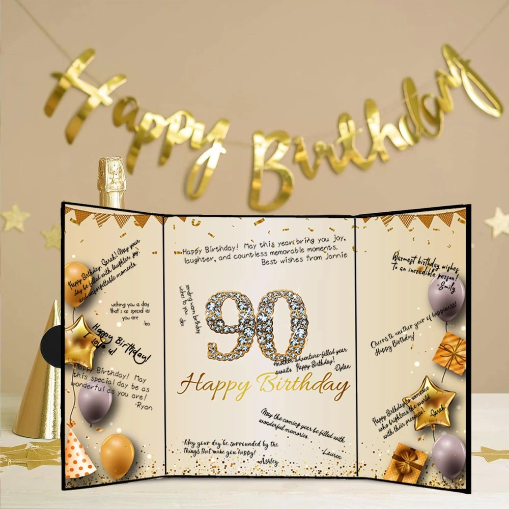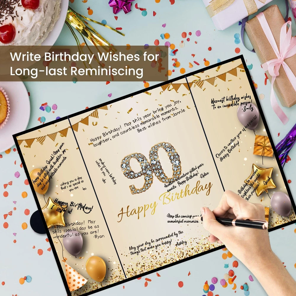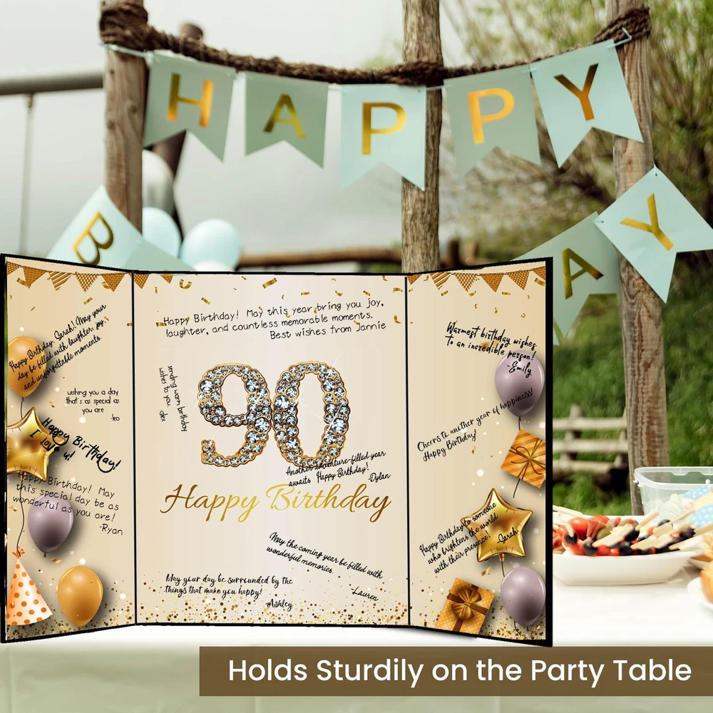 RuDily 90th Birthday Party Decorations, Happy 90th Birthday Alternative Signature Guest Book for Men Women Cheers to 90 Years Old Gifts 90 Birthday Signing Card Board Party Supplies Black Gold Birthday Party Decorations, Happy Birthday Alternative Signature Guest Book for Men Women Cheers Birthday Gifts Birthday Signing Card Board Party Supplies đă90th Birthday Giftă - 90th Birthday is a significant milestone and worth taking the time to celebrate! It is an excellent way for your guests, friends, family, and coworkers to create a sincere and timeless souvenir instead of the often impersonal and forgotten ordinary gifts. Our happy 90th birthday certificate guest book can be beautifully displayed and appreciated for years to come because of the durable finish. đăPerfect Sizeă - The cover of Happy 90th Birthday signature sign is approx. 45.6 x 30.6 cm/ 18 x 12inches; the left and right inner page is approx. 10.5 x 30cm/ 4.1 x 11.8inches; the middle inner page: approx. 21.5 x 30 cm/ 8.5 x 11.8inches. It is a fun party decoration idea for the 90th Birthday. You can make your keepsake unique and keep them endlessly. đăCompact and lightweightă - Our black gold birthday card folds to 9x12 inches, expanding to 18x12 inches for ample writing space for heartfelt wishes to family and friends. It's perfect for sharing special moments and celebrations with loved ones! đăPackage Includedă -You will get a Happy 90th Birthday signature guest book(without pen). It doesn't need to assemble and is a practical tool to sign the names or blessings of the guests at the 90th birthday party. It is durable and suitable for long term storage for you, your friends or family beautiful memories. It will not fade for years, perfect for writing, durable, suitable for long term storage. You can look back over time at your amazing creation. đăUnique Designă - The framed cover of the 90 birthday certificate gift is professionally designed with pearlescent frosted paper, with a gilded round badge. There are three parts of the inner page for signature. The internal middle page contains the words " 90th Happy Birthday". Easy to write on and won't smear or easily tear. You can sign the best blessing and wishes for your friends, family, or colleagues as a perfect gift. đăWide Applicationă - Decorating your home and party with our gold 90th Birthday Certificate poster card will be a big hit at your 9 0th birthday party. This cheers to 90 year old party decoration is easy to match with other party supplies, creating a warm vibe for your party. Perfect as a decoration for birthday parties for you, your family, friends, or coworker. The framed black gold 90th birthday guest book can be displayed anywhere in the home or office as cherished reminders of the special day. Shipping from the USA All of our products are shipped from the USA, ensuring quick delivery to your destination. Payment We offer the following payment methods: PayPal, credit card, bank transfer, and eBay's secure payment system. Free Shipping & Free Returns Shipping within the USA is FREE. Additionally, any return is absolutely free for you. Risk-Free Purchase You have the option to return an item within 30 days without any justification. We cover the return shipping costs! Fast Shipping We ship immediately upon receipt of payment. Generally, the package is delivered within 2-3 days in the USA. If it takes longer, we will contact you. Quality and Costs Made in Europe, USA, China No customs fees or additional charges Total satisfaction guarantee Invoice with declared VAT available upon request in .pdf format Feedback Your feedback is very important to us. After you pay for your purchase, you will automatically receive positive feedback from us.