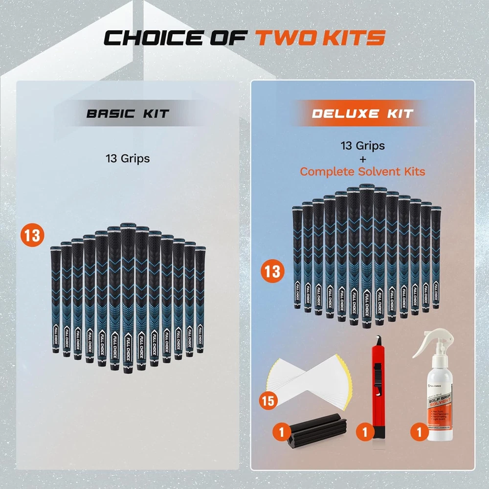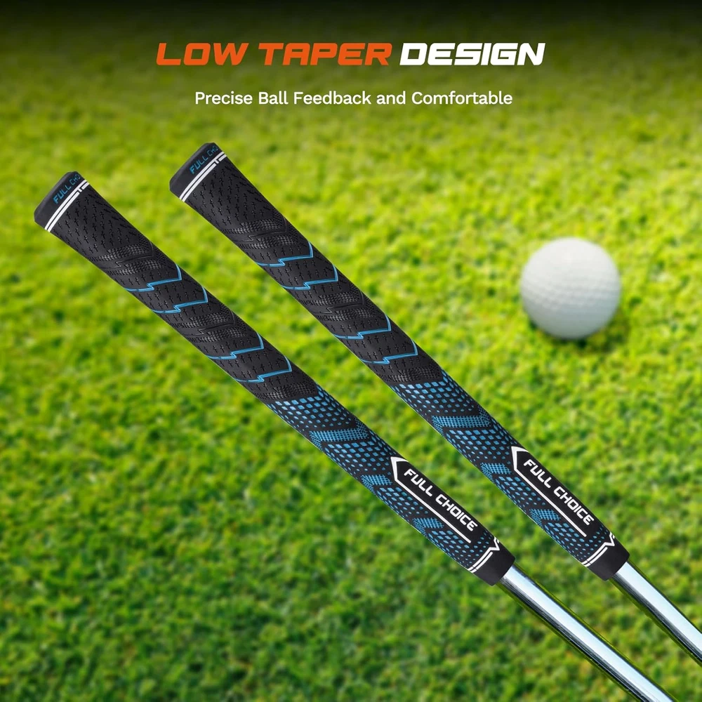 Rubber Golf Grips 13 Pack, High Traction, Non-Slip, Advanced Texture, Choose from 13 Grips or 13 Grips with Regripping Kit, Standard/Mid/Jumbo Size, 4 Colors Available RG01 Golf Club Grips High-Performance Rubber Material: The rubber material we use excels in both shock absorption and anti-slip characteristics, which ensures stability in every swing Low Taper Design: Low taper design used on the lower part of the grip allows less tension on your hands to guide the club better, which reduces grip pressure for better control. The swing is smoother and more powerful All-Weather Control: The soft micro-texture of the golf club grips enhances grip and combines with the outstanding non-slip nature of the High-Performance Rubber Material, allowing you to enjoy the fun of golf anytime, anywhere Multiple Choices: Three sizes: standard/mid/jumbo. four colors: Red, White, Blue, Green. Two bundles: Base set; Deluxe set(includes full regripping kit) Caring Service: If you have any problems when purchasing Full Choice products, please reach out to us in time Product Description The size of the grip is chosen based on the palm size and gripping preference. Generally, a thicker grip diameter enhances grip strength while a thinner grip diameter offers higher flexibility. Beginners are recommended to opt for a larger grip diameter to minimize hand fatigue and improve swing stability. It is advisable to read product reviews and seek recommendations from experienced golfers or professional instructors before purchasing golf grips. Their insights can be valuable for novices in selecting the appropriate grip product. Friction Patterns: The rubber grip is designed with unique deboss printings and friction patterns, resulting in enhanced grip performance. These patterns provide excellent traction and control, allowing users to maintain a secure grip during various activities. Aim Assistance: With its pointy patterning and logo, the rubber grip offers improved grip alignment, leading to enhanced aim assistance. Users can confidently handle their equipment, knowing that the grip will help them achieve precise and accurate shots. Abrasion Resistance: Crafted from premium rubber and a special formula, this grip demonstrates exceptional durability and resistance to abrasion. Even under intense wear, it maintains its grip performance, ensuring long-lasting usability. Experience superior grip, improved aim, and reliable durability with this high-quality rubber grip. It is the perfect accessory for anyone seeking enhanced performance and control in their activities. These all-weather golf club grips feature a premium rubber compound for a secure and moisture-resistant hold. The corded texture enhances surface texture control, making it ideal for golfers struggling with grip consistency or sweaty hands. The reduced taper design promotes a relaxed grip, reducing hand tension and fatigue. Overall, these grips offer all-weather performance, surface texture control, and enhanced comfort and performance on the golf course. Color Blue Grip Type Blue (13 Grips with Solvent Kit) Grip Material Rubber Grip Size Standard Product Dimensions 10.6"L x 1.1"W Item Dimensions L x W 10.6"L x 1.1"W Material Type Free Rubber, Latex Free, BPA Free, and any other materials not explicitly listed Shipping Fast shipping is very important for us. Our standard US shipping service is FREE. Your order will be shipped within 2-3 business days upon full payment received. Your order will be delivered within 2-3 business days after the handling time. We only ship to the confirmed PayPal address. We reserve the right to cancel any order for any reason at any time. We are not responsible for undeliverable addresses. Returns and payment We offer a 30 days return policy from checkout winning date. We allow only PayPal as payment method FeedBack Your feedback very important to us, after you get your package and you are satisfied with our service please leave us positive feedback If you have any problem with your order / any questions please before leave any type of feedback For any questions, using eBay contact system Please visit our eBay store to check out other items for sale! Thank you for shopping at our store.