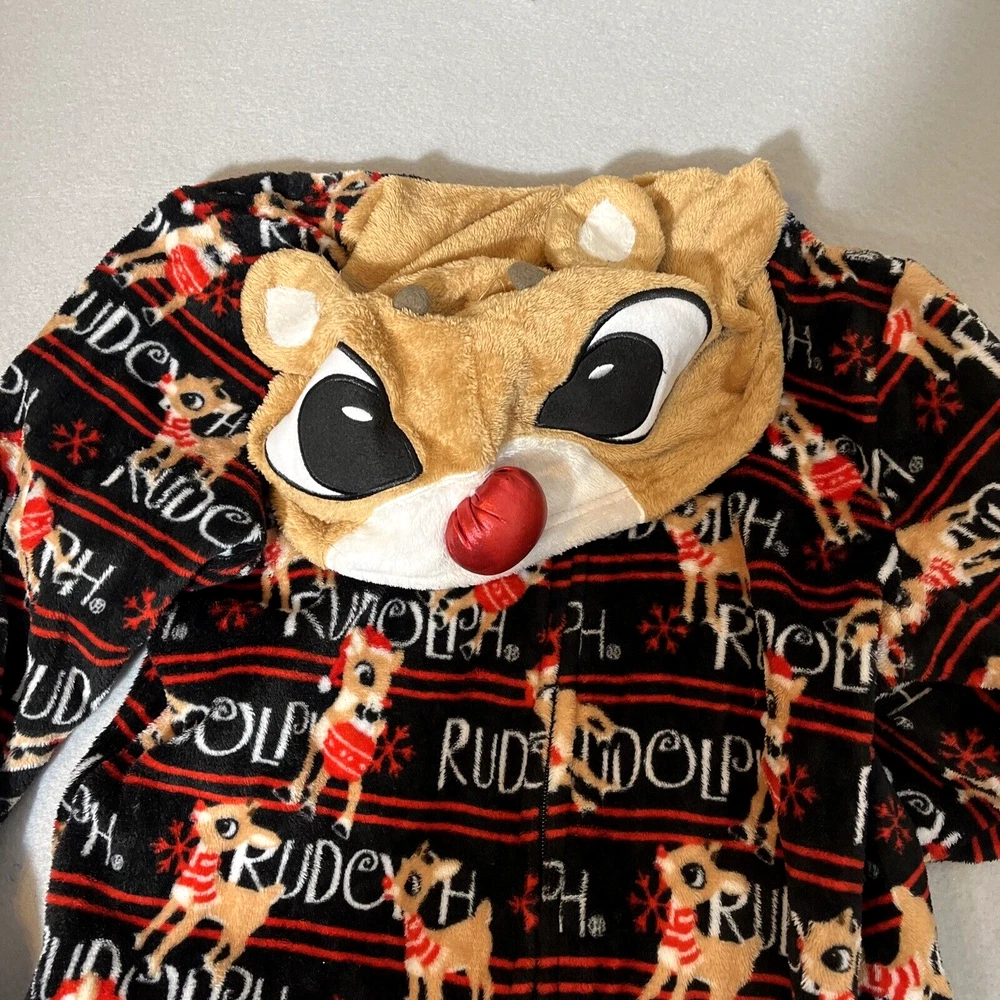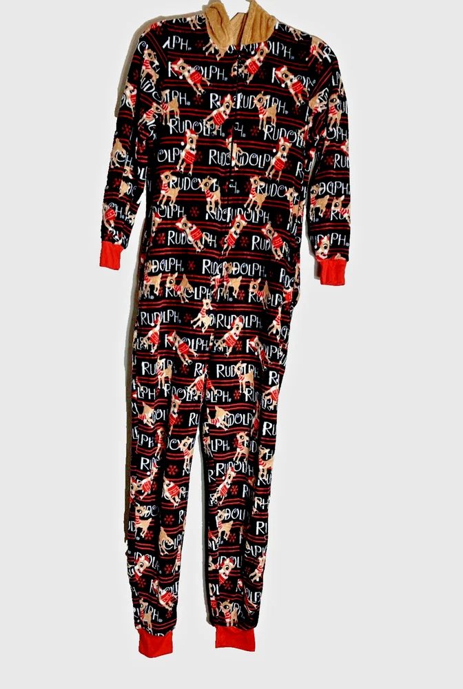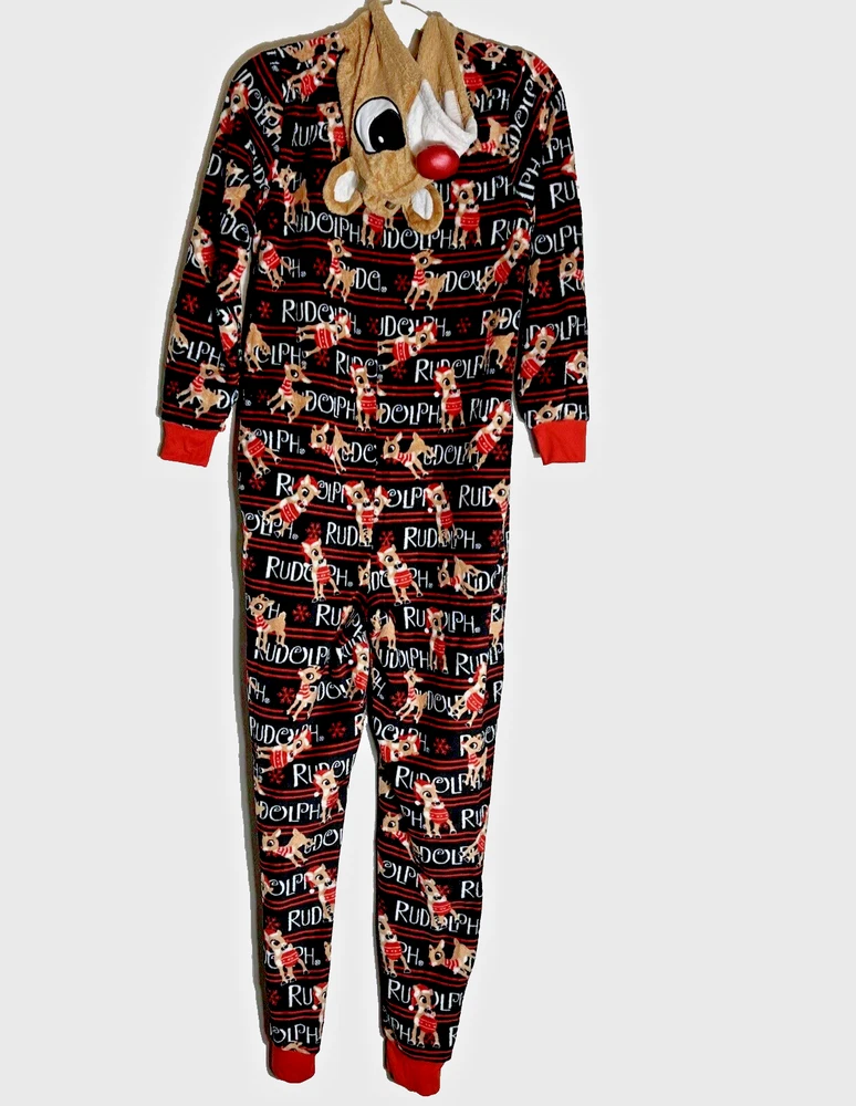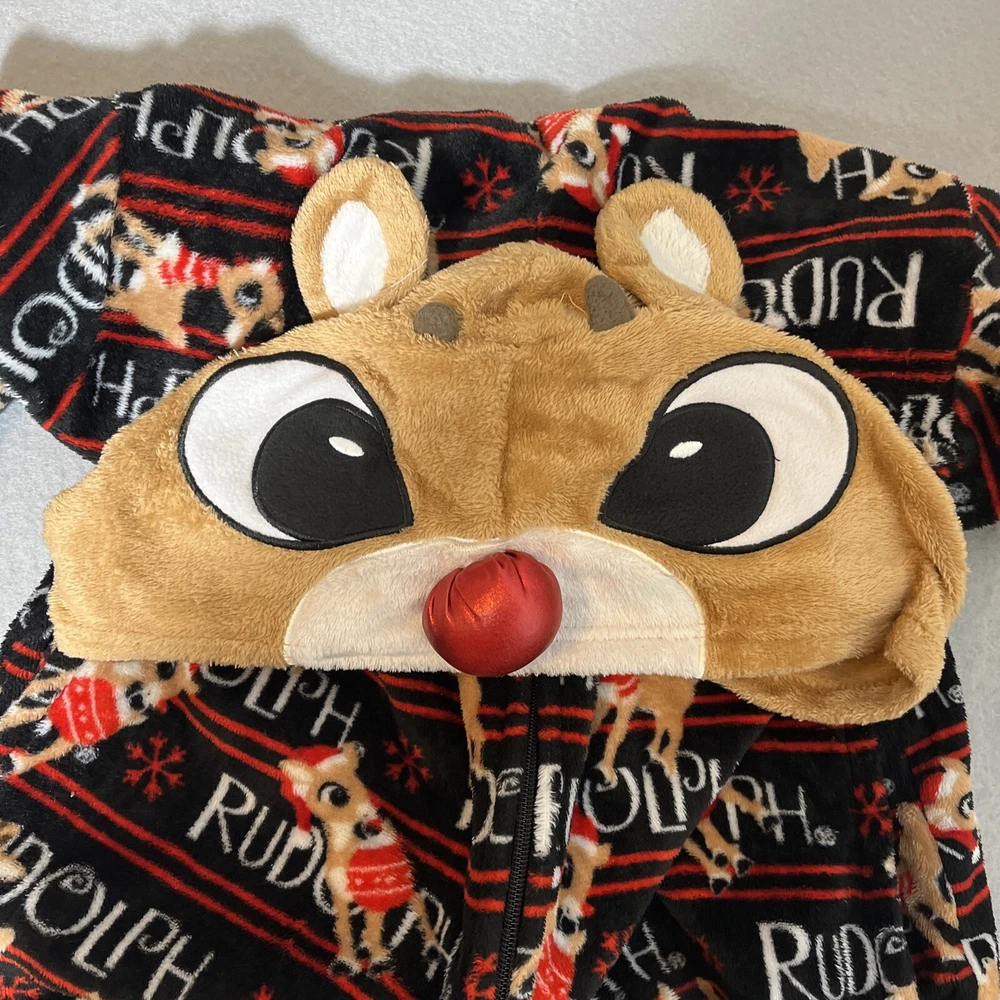 Get ready for the holiday season with these fun and cozy Rudolph the Red Nosed Reindeer pajamas! This one piece hooded pajama is made of soft and durable polyester fleece fabric, perfect for keeping you warm during the chilly fall and winter months. The zip closure ensures a snug fit and easy on and off, while the long sleeves and colorful design add a festive touch to your sleepwear collection. Machine washable for easy care, these pajamas are perfect for Christmas morning or any holiday picture. Whether you're hosting a sleepover or just looking for a cozy night in, these Rudolph pajamas are sure to bring a smile to your face. Available in size small (4/6), these pajamas are a must-have for any Santa or holiday enthusiast. Very good condition. Smoke free environment We try to ship same day or next day Feel free to message us with any questions