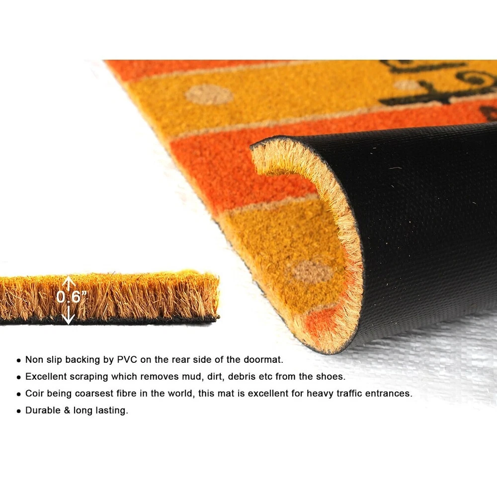 Make your home more inviting with our printed contemporary doormat. Crafted of coir, a fiber made from the husk of a coconut, this textural piece will keep the outdoors out and the indoors a little cleaner. Coir face with vinyl non-skid back. To clean simply sweep or shake. Made in India.Features: Recommended for Indoor or Outdoor Use Under ShadeSweep or Shake CleanMade from Coir, one of the strongest natural fibersPerfect for all entrywaysNon-Skid Backing Free Shipping Over $49.99* Details RugSmith Multi Machine Tufted Trick or Treat Doormat, 18" x 30" - 18" x 30" Product Description: Make your home more inviting with our printed contemporary doormat. Crafted of coir, a fiber made from the husk of a coconut, this textural piece will keep the outdoors out and the indoors a little cleaner. Coir face with vinyl non-skid back. To clean simply sweep or shake. Made in India. Features: Recommended for Indoor or Outdoor Use Under Shade Sweep or Shake Clean Made from Coir, one of the strongest natural fibers Perfect for all entryways Non-Skid Backing