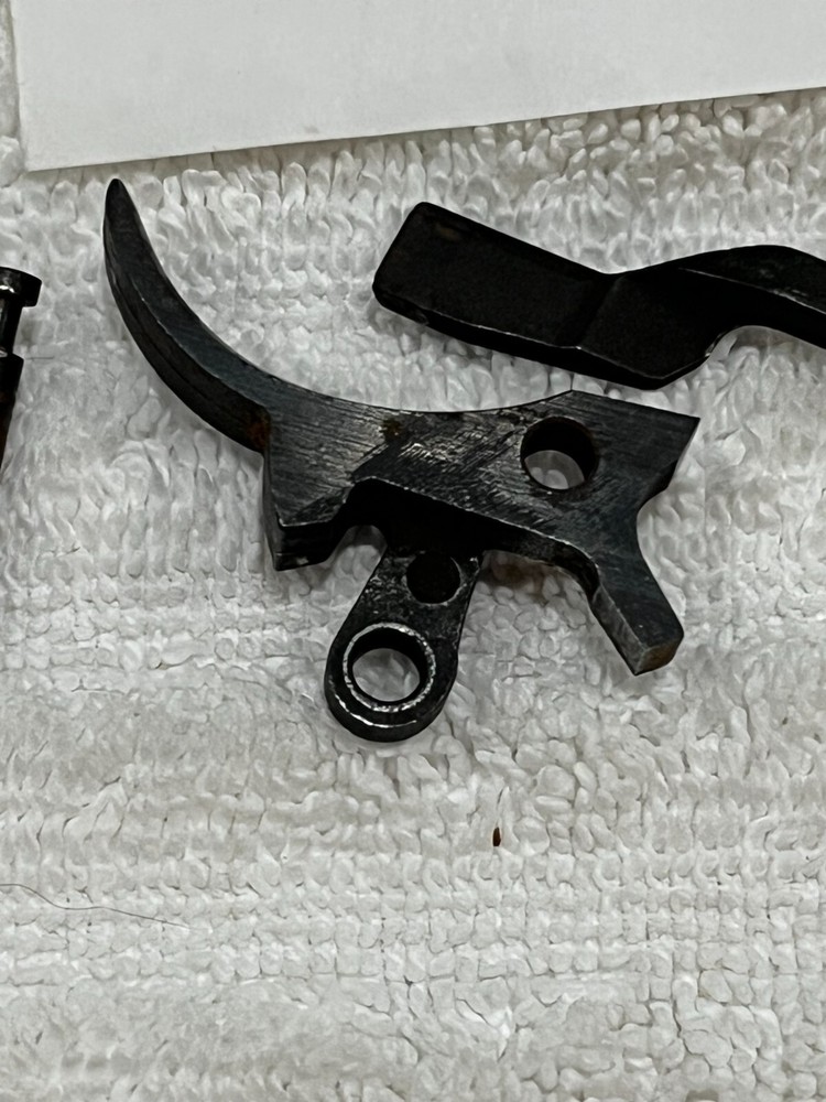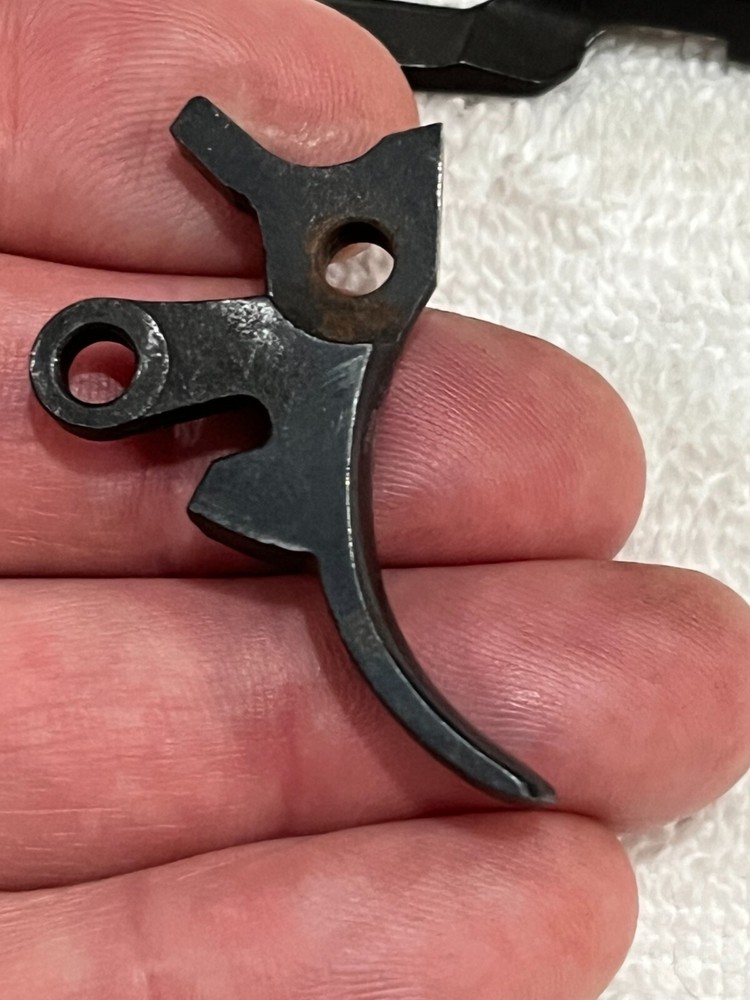 Blued trigger, transfer bar and pin marked as for a Ruger New Model Blackhawk in .357 Magnum. Looks nice to me. Have some other parts for same model available and will be available soon. I believe this is interchangeable with other calibers and models. Please refer to images. Glad to combine freight when possible, please message me prior to paying for an invoice with combined freight amount. Message any questions or for more images. Thanks for looking!
