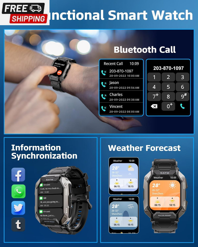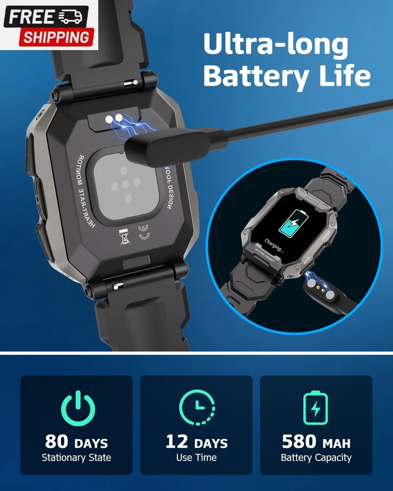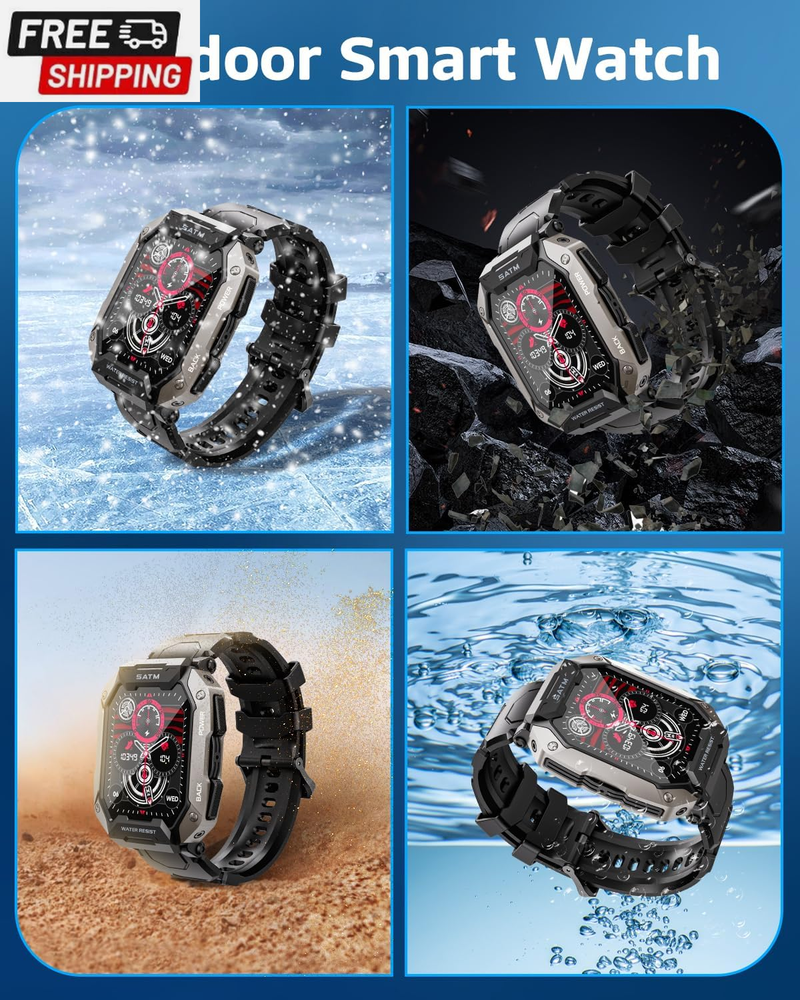 This military smartwatch is a game-changer! The 2.01" HD display is super crisp, and Bluetooth calling works flawlessly. I love the 100+ sport modes—perfect for tracking my workouts. The IP68 waterproofing means I can swim with it worry-free. Heart rate and blood pressure monitoring are accurate, and battery life lasts days. Fast shipping, great customer service, and the 30-day guarantee make this a no-brainer purchase. Highly recommend for anyone wanting a rugged, feature-packed smartwatch!