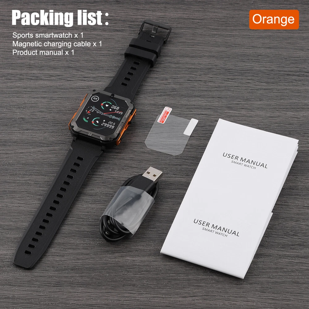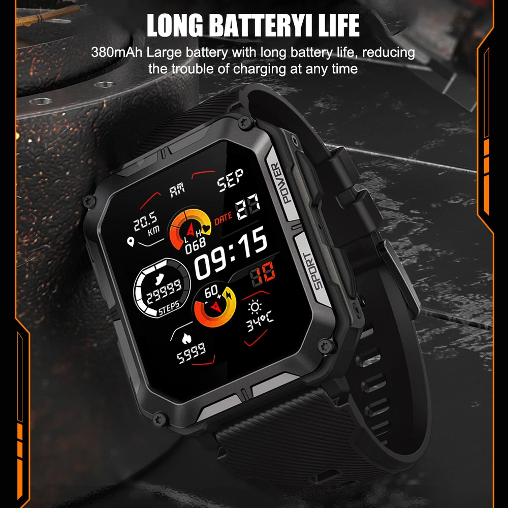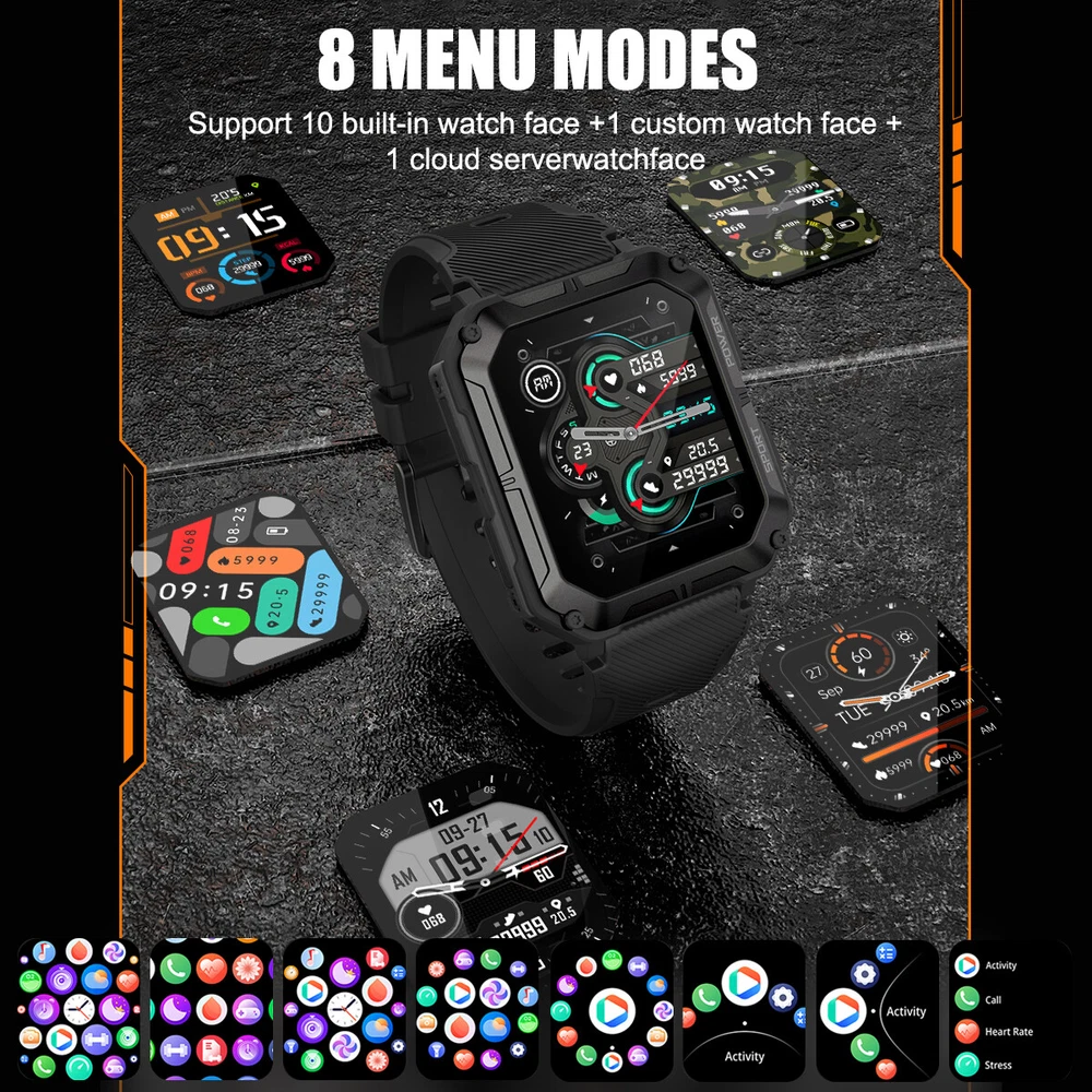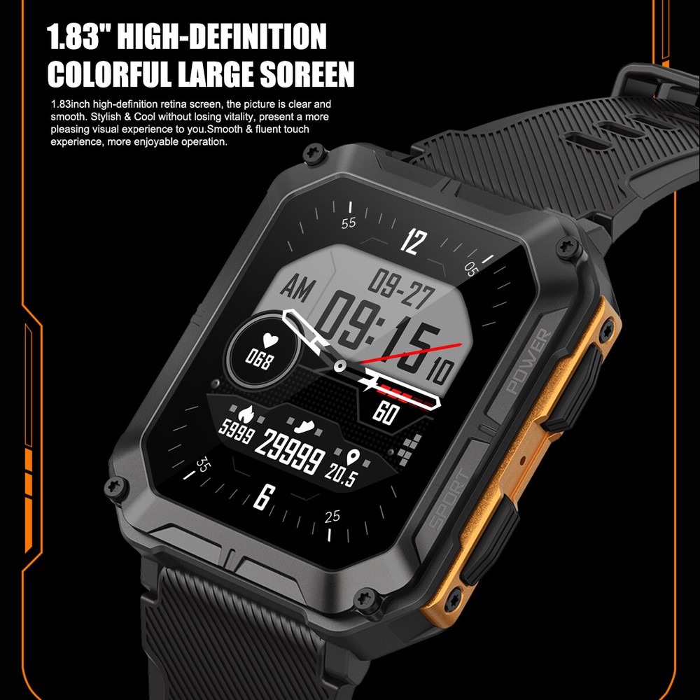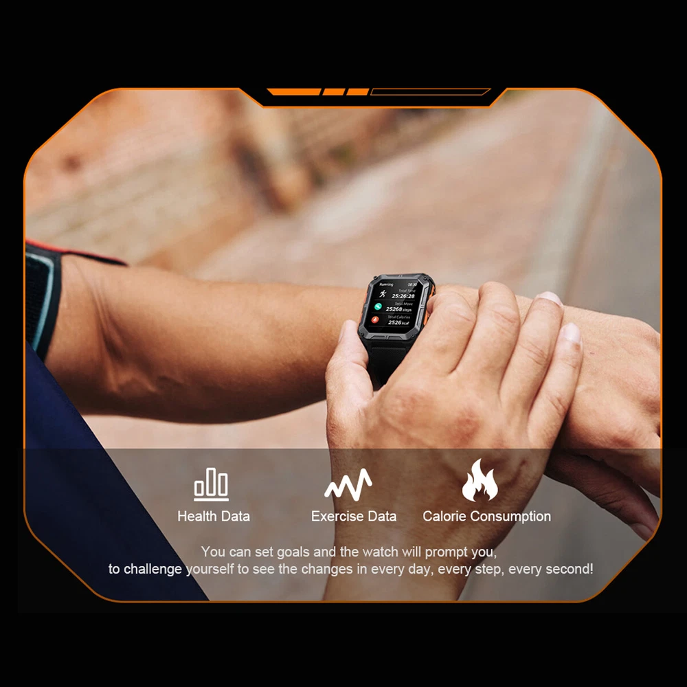 Product Description Features: 1. The main body of the watch is made of zinc alloy metal frame, and the mirror surface is made of Corning glass, which is sturdy and scratch-resistant, with 5ATM water resistance, good protection performance, and can be used for various outdoor sports scenes; 2. Powerful functions, built-in multi-point optical sensors, comprehensively detect health data, including heart rate, sleep time and quality, and can also set sedentary reminders and drink water reminders to help you develop a better life and work Habit; 3. Support a total of 24 sports data detections such as walking, running, cycling, mountaineering, etc., view sports data in real time, and better understand the progress and effect of sports completion; 4. Mobile phone interconnection, real-time viewing of mobile phone APP message notifications and call reminders, and one-key operation to reject. Message notification supports mainstream APPs such as SMS, facebook/twitter/whatsapp/wechat; 5. The watch comes with 12 wallpapers with various styles, and you can also download 150+ fresh wallpaper patterns from the Internet, so that the watch interface is completely new and not the same; 6. With various functions for daily use, such as alarm clock setting, stopwatch, countdown, breathing exercise; 7. The watch has a built-in 380 mAh battery, which can last up to two weeks with light use when fully charged, without the hassle of daily charging. Parameters: C20 PRO C20 Plus Material: alloy case, silicone strap Material: alloy case, silicone strap Screen: 1.83 inches 286 x 240 resolution HD square screen Screen: 1.81-inch 240x 286 resolution HD square screen Connection: Bluetooth 5.0 Connection: Bluetooth 5.3 APP name: Dafit APP name: Dafit Supported languages: English, French, Japanese, German, Spanish, Russian and other 35 languages Supported languages: English, French, Japanese, German, Spanish, Russian and other 35 languages Supported devices: Android 6.0 iOS9.0 and above Supported devices: Android 6.0 iOS9.0 and above Battery: Capacity 380mAH Battery: Capacity 140mAH Charging cable length: 60cm Charging cable length: 60cm Case size: 54mm x 43mm x 12.9mm Case size: 55mm x 44.5mm x 13.5mm Watch total length: 265mm Watch total length: 265mm Maximum wear length: 248mm Maximum wear length: 245mm Minimum wear length: 170mm Minimum wear length: 165mm Watchband width: 22mm Watchband width: 20mm Waterproof class: IP68 Waterproof rating: 5ATM Style: Outdoor, Sports, Defense, Tactical, Tough Guy, Muscular Product function: Connect mobile phone APP via Bluetooth, provide health monitoring (heart rate, sleep, sedentary reminder, drinking water reminder, etc.), exercise record (24 exercise record data can be selected), mobile phone message notification, caller ID, weather check (obtain data from mobile phone), alarm clock (three can be set), remote control photography, etc. For more detailed functions, please refer to the product manual. Packing list: Sports smart watch x1 Magnetic charging cable x1 Product manual x1 Payment Shipping Terms Returns Contact Us We accept PayPal only. If buyer want to delay the payment because of financial problem, please contact me by the ebay message within 3 days Payment via PayPal (PayPal accepts all major credits/debit cards and eCheque) ECheque payment will tak e 3-10 days to get clear, thus DELAYing the shipment. Handling time: 1 business day (Orders are not processed on weekends & holidays) Tracking information will be sent once item is shipped. Local pick-up is unavailable at the moment. For international shipping and shipping to Guam, Hawaii and Alaska, Please contact us before placing the order. Item is shipped to ebay address. Leaving correct address can minimize delay. For any issues with Defects, Return, Item Exchange request, please contact us first and send us a message first before opening any type of case or request. We devote ourselves making EVERY CUSTOMER in 100% Satisfactory and resolve any problem. We highly value and appreciate your business. Thank you. No returns will be accepted without an RMA number. Please contact us for the RMA number. Return is acceptable within 30 days of delivery. Return for replacement or money back is optional. Returned items must be in the brand new, unaltered and resalable condition. Seller is not responsible for any labor cost, expense in a dealer store, or damage due to wrong installation. Return is accepted within 14 days after the buyer's receiving the item. (Excluding contrived damagement or misusage).100% money-back Guaranteed! All product will be tested in 100% before delivery.If the item is defected by the processing of postage,Buyer has up to 14 days from date of receipt for exchange of a new one.All shipping charges for returned products are to be paid by the buyer,Please contact us for the return address All messages will be answered within 24 office hours. Please contact us either by clicking "contact seller" in the "purchase history" section or simply click "ask a question" at the bottom of this page. If you are unsatisfied with our item or service, please contact us before leaving any feedback. We are committed to resolve all issues in a friendly and satisfactory manner. We always reply to messages within 2 business days (off-duty at weekend). If you do not get a response from us, then please check your junk or spam mailbox. Payment We accept PayPal only. If buyer want to delay the payment because of financial problem, please contact me by the ebay message within 3 days Payment via PayPal (PayPal accepts all major credits/debit cards and eCheque) ECheque payment will tak e 3-10 days to get clear, thus DELAYing the shipment. Shipping Handling time: 1 business day (Orders are not processed on weekends & holidays) Tracking information will be sent once item is shipped. Local pick-up is unavailable at the moment. For international shipping and shipping to Guam, Hawaii and Alaska, Please contact us before placing the order. Ite