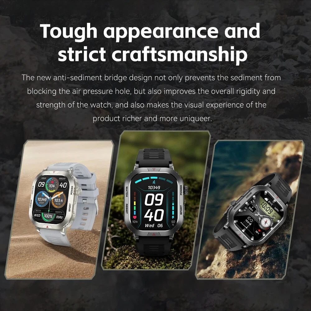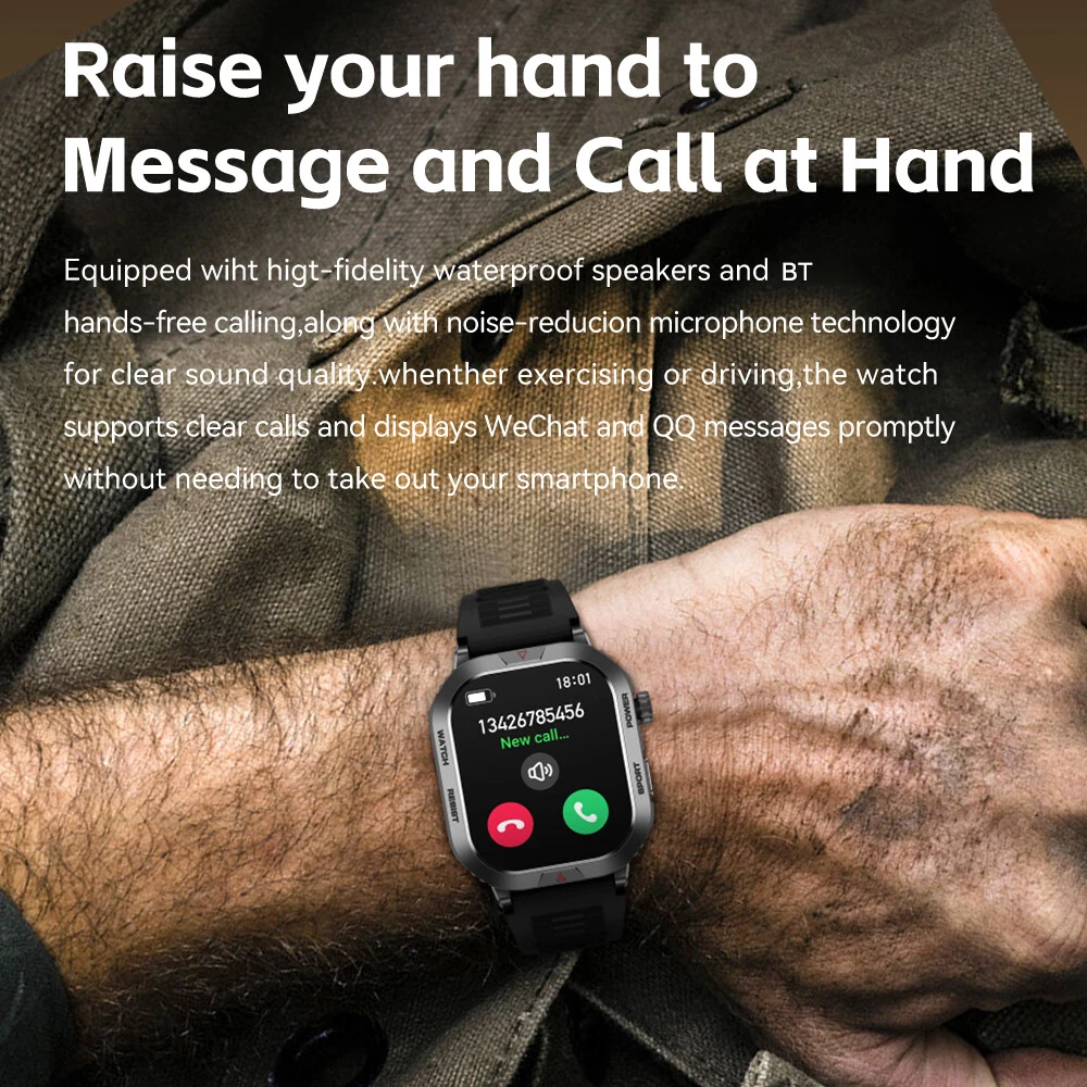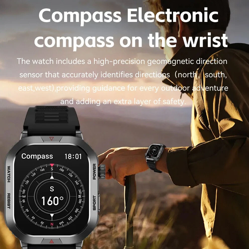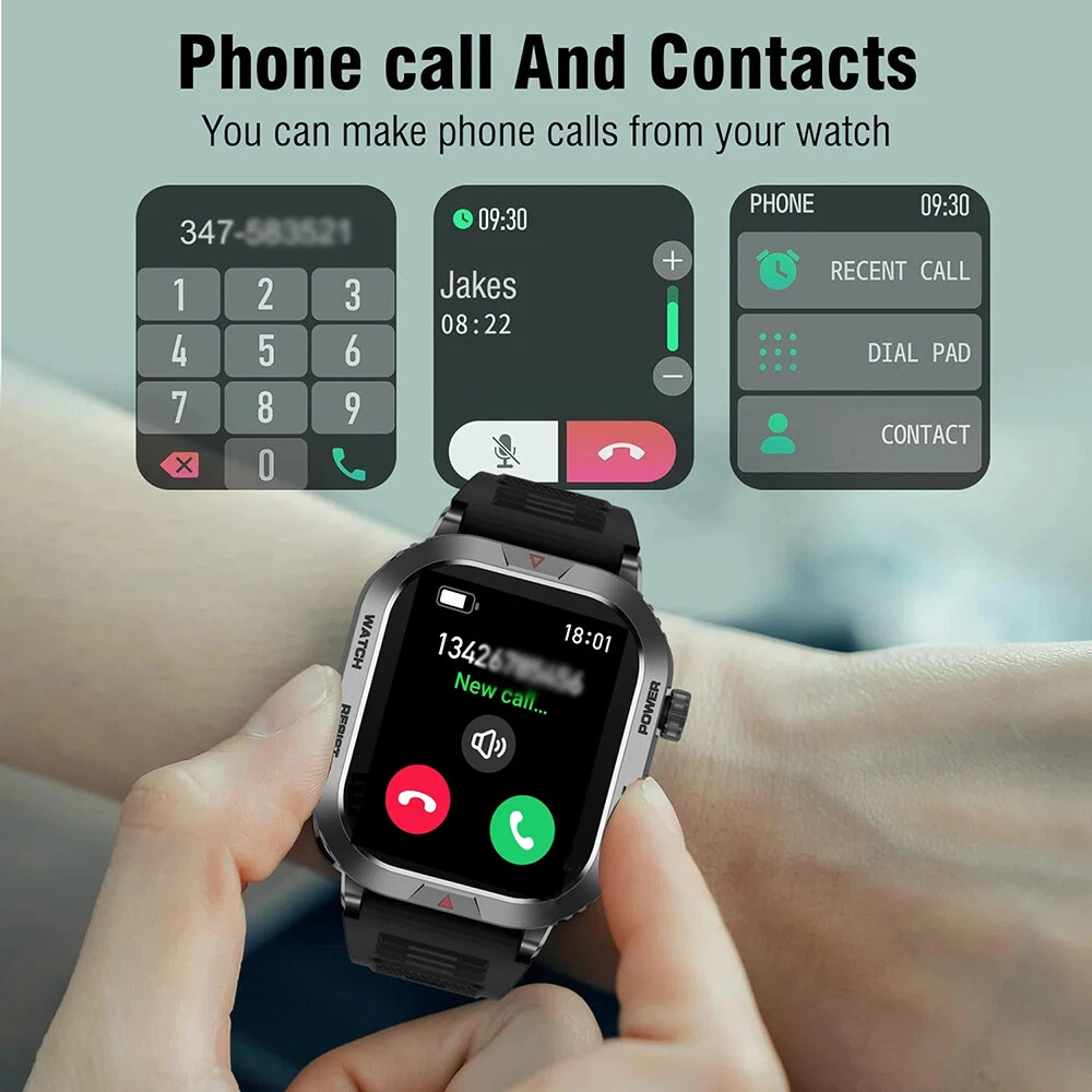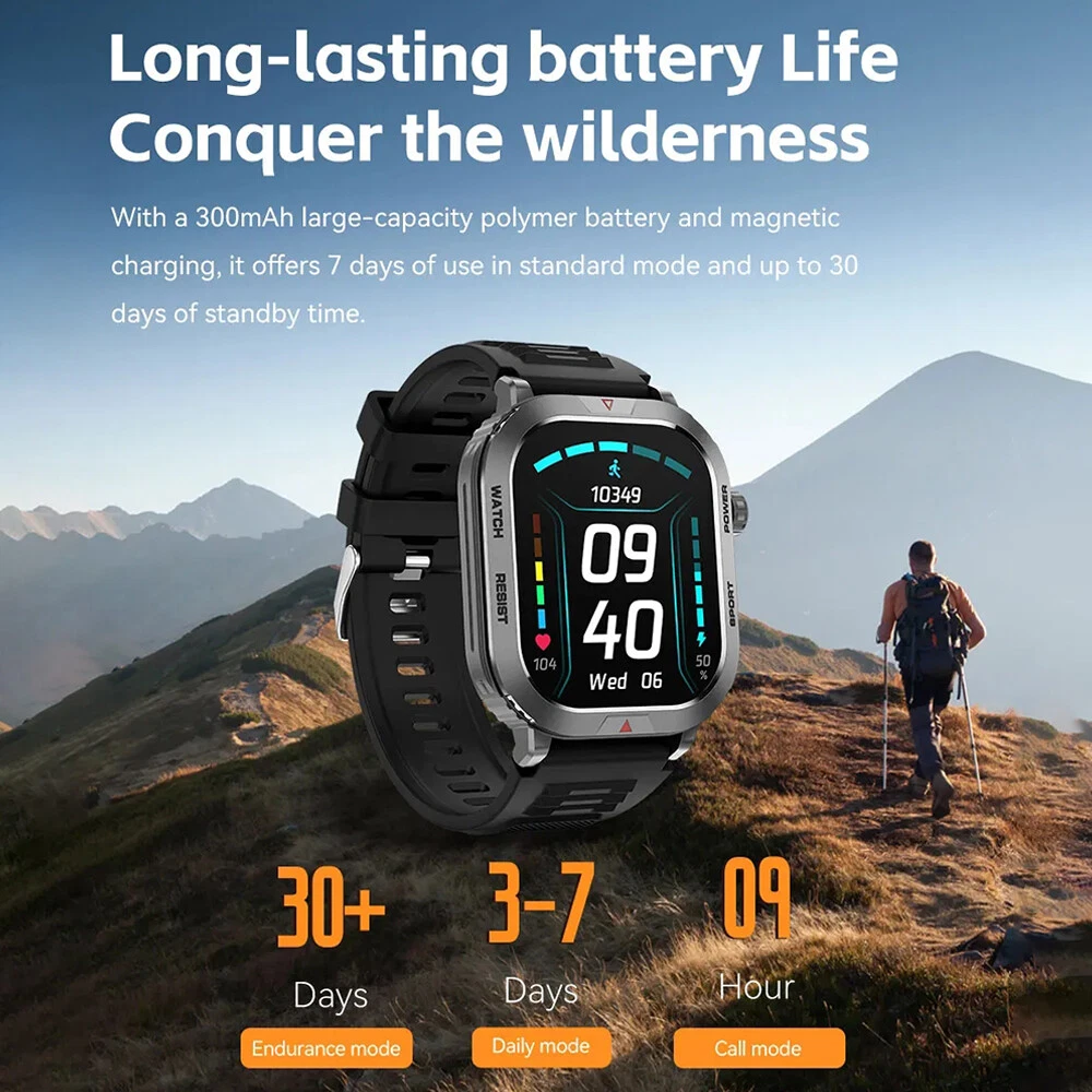 Features: 【Tough Performance】This fitness tracker watch has over 100 comprehensive workout modes for any activity, from walking to running, cycling, rock climbing, yoga, etc., which can accurately and easily track daily data such as activity, distance and calories for any purpose. The large capacity 300mAh battery is fully charged in 2 hours and lasts 3-7 days per charge, which can be extended to 30 days in standby mode. 【Wireless Calls and Message Notifications】 Make wireless calls on your smartwatch simply by connecting through the app, take calls, receive message vibration alerts and app updates - all on your wrist without having to constantly check your phone while driving, exercising, or engaging in activities where it's difficult to hold your phone. The Tactical Smartwatch keeps you informed without distraction so you can fully focus on what you're doing. 【Military Grade Certification and Full Metal Frame】Military smartwatches undergo 15 of the most rigorous durability tests to simulate harsh conditions such as deserts, rainforests and arctic weather. This proves that only a watch designed to adapt to any environment can be smart enough to be easy to use. It is IP68 water resistant and can handle splashes, sweat, etc. such as hand washing or light rain (not suitable for swimming or prolonged immersion). 【Ultra High Resolution & Customise Your Unique Style】 The smartwatch makes it easy to personalise its watch face. Its 2-inch HD display has a high resolution of 240*296, providing unrivalled visibility even outdoors. With the app, you can access more than 500 customisable dials and use the images to create personalised dials that showcase your unique personality and style. Specifications: Product Type: Smartwatch Model Number: ZW66 Apps: Fitcloudpro Main Control Chip: 8959T6 Sensor: 3-axis gravity sensor Operation mode: Multi-touch screen + two physical buttons + encoder Screen size: 2 inches Resolution: 240*296 Waterproof rating: IP68 Bluetooth version: 5.1 Speaker: Support LED torch: support Charging method: magnetic suction Battery capacity: 300mah Charging time: 2 hours Use time: 3-7 days of normal use (user use method and frequency situation) System requirements: Android 4.0 and above IOS8.0 and above Main features: pedometer, exercise time, exercise mileage, calorie consumption, sleep monitoring, save 30 days of exercise, sleep data, real-time heart rate measurement (dynamic, static), blood pressure measurement (can be set up to measure blood pressure regularly), blood oxygen measurement, body temperature, custom alarm clock reminder, sedentary reminder, incoming call reminder, information push (SMS/QQQ/WeChat), custom dials, a large number of online dials, flipping the wrist to light the screen Gmail,Snapchat,Push the information prompted by the mobile phone custom alarm clock reminder, sedentary reminder, incoming call reminder, push messages (SMS/QQQ/WeChat) Language support: Simplified Chinese, English, Japanese, Korean, German, French, Spanish, Arabic, Russian, Traditional Chinese, Ukrainian, Italian, Portuguese. Machine size: 56.74*46.27*12.68mm Strap length: 265.28mm Wristband material: silicone Body material: zinc alloy Product colour: black Package Included: 1*smart watch 1*Charging cable 1*User manual Attention: 1.Wearable devices monitor human activities through electronic sensors. They are at the level of consumer electronics. Some deviation is normal. The health test results of the watch are for reference only and cannot be compared with medical devices. When the watch is placed on the surface of an object, there will be test results such as heart rate/blood pressure. This is normal and not a product defect. 2. As the firmware is updated, the user interface will be updated accordingly. Pictures are for reference only, everything is subject to the actual product. 3.This product is an electronic product. Do not use this product for bathing. Do not expose it to high temperatures. Do not immerse it in water. 4.Please download the APP and bind the watch first, do not use your mobile phone Bluetooth to link the watch directly. If it is already connected, please remove the matching watch from the Bluetooth matching device of your mobile phone. 5.Due to the difference of light and screen, the colour of the item may be slightly different from the picture, thank you very much!