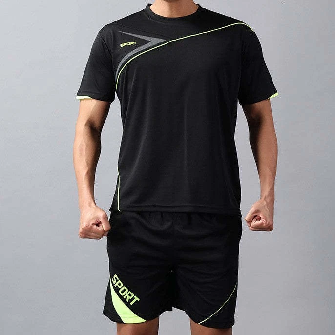 Product information: Color: white, red, black, blue, fluorescent green Top sleeve length: short sleeve Pants length: Shorts Size: M,L,XL,2XL,3XL,4XL,5XL Thickness: thin Fabric name: Chemical Fiber blend Applicable scenario: Sports Main fabric composition: Polyester Fiber (polyester) Jacket style: T-shirt Hooded or not: no Hooded Suitable season: Summer Style: Sports Size: Unit: cm Note: 1. Asian sizes are 1 to 2 sizes smaller than European and American people. Choose the larger size if your size between two sizes. Please allow 2-3cm differences due to manual measurement. 2. Please check the size chart carefully before you buy the item, if you don't know how to choose size, please contact our customer service. 3.As you know, the different computers display colors differently, the color of the actual item may vary slightly from the following images. Packing list: Sports package X1set Product Image: