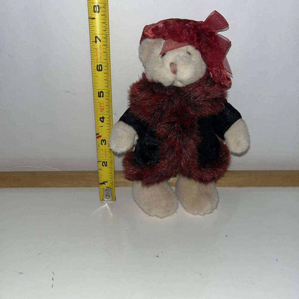 Russ Berrie "Natasha" Plush Small Bear Stuffed Animal 7” Standing Faux Fur Coat