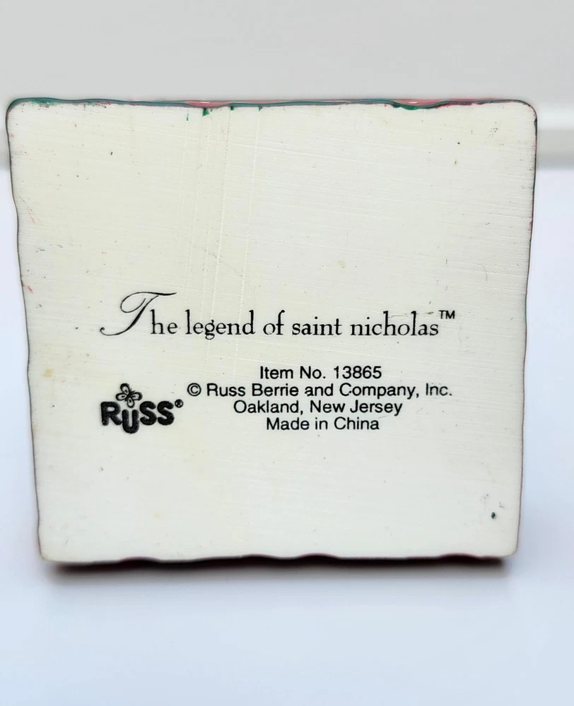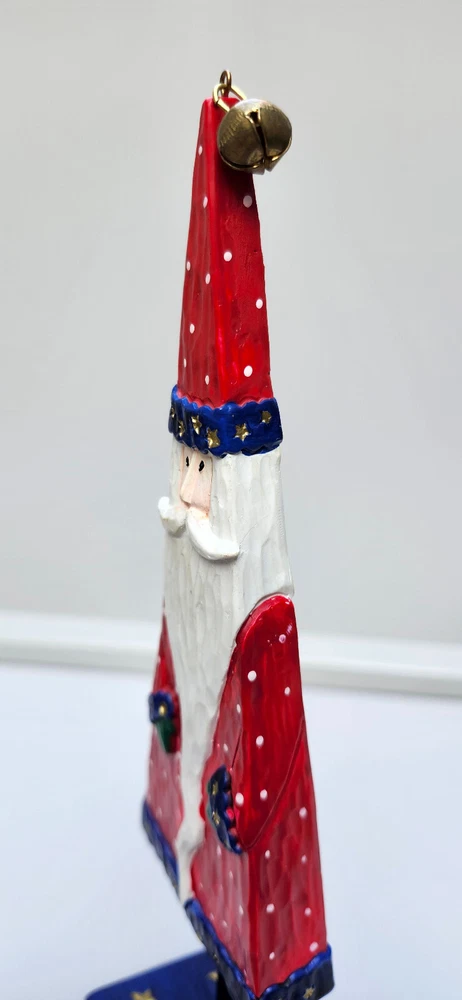 🎅 Russ Berrie "The Legend of Saint Nicholas" #13865 Santa Christmas Figurine with Stars and Jingle Bell! ✨️🔔 Cute piece. 📏Measures 9.25" tall x 2.25" wide.