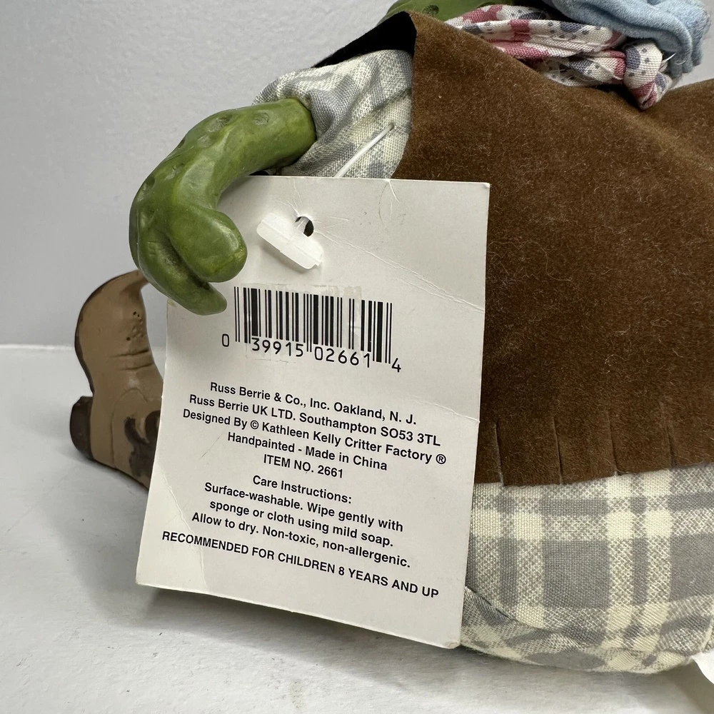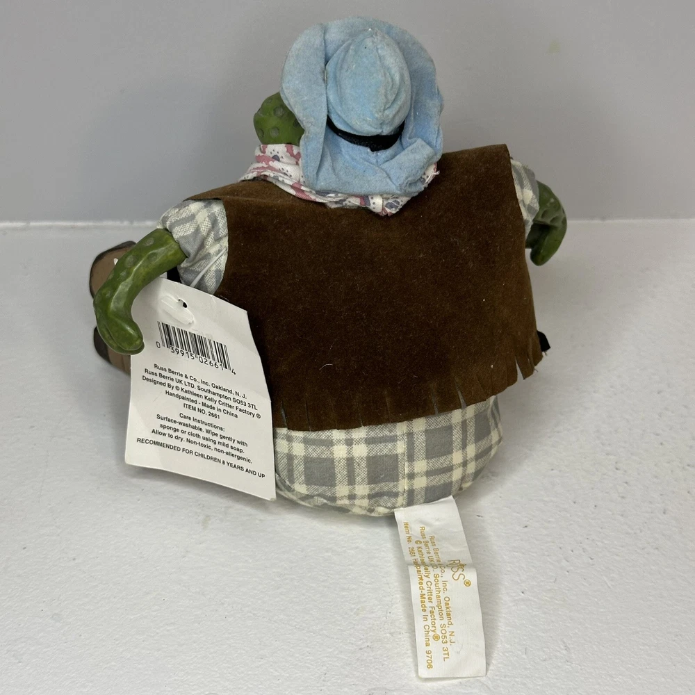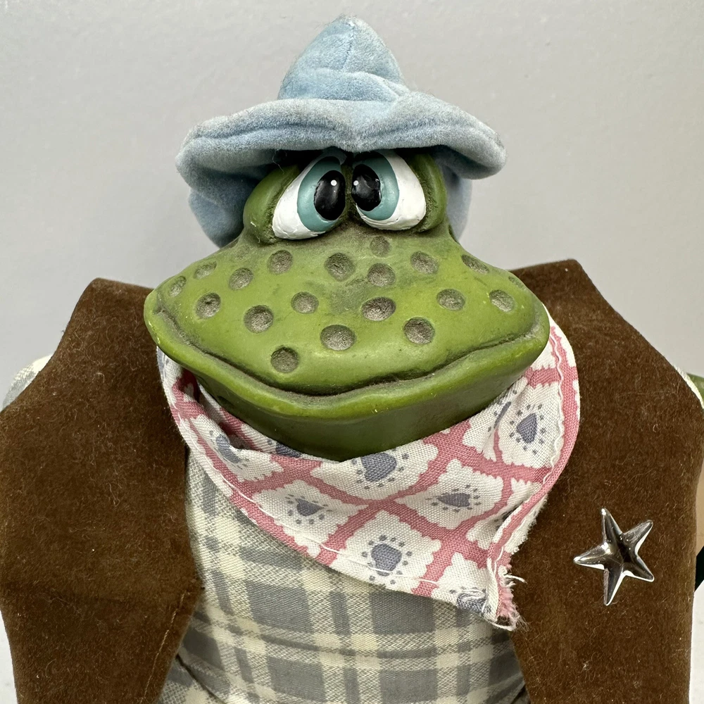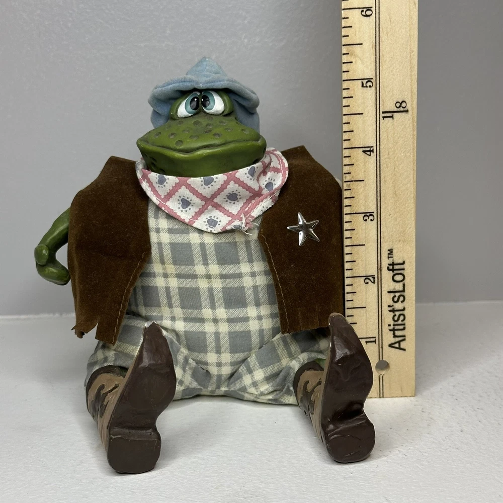 This Russ Berrie collectible features Wyatt Burp, the beloved frog, painted in vivid detail on resin. The sculpture stands at 5 inches tall and is a part of the Kathleen Kelly Critter Factory collection. It is a perfect addition to any collection of Russ figurines or western memorabilia. See photos for condition details. Shipping: All items are packed with care. I do use recycled packing and shipping materials whenever possible. If you have any issues with your purchase, please reach out as soon as possible. Thank you for your business!