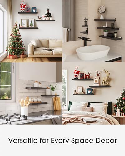 Return Policy Fast Delivery Trusted seller Floating Shelves for Wall, Wall Mounted Rustic Wood Shelves for Bathroom, Bedroom, Living Room, Kitchen, Hanging Shelf for Books/Storage/Room Decor with 22lbs Capacity (Black, Set of 3, 16in) Product Description Engineered Wood Modern & Simplistic - Create a personalized display with our sleek wooden floating shelves that offer a contemporary design Protection Sealing - Each shelf is treated with a protective sealant to prevent warping or damage Versatile Design - These shelves can be easily placed in any room, from your cozy bedroom to your functional kitchen or home office,christmas decoration Increased Load-Bearing - Our shelves can hold up to 22 lbs, allowing you to display your favorite objects with confidence Larger Size - Measuring 16 inches in length, our shelves provide ample space for both storage and decoration Shipping Returns Payment Shipping Shipping is FREE to all addresses other than APO/PO boxes in the lower 48 states. All our stock ships from US-based warehouses. Shipped via USPS or UPS (depending on location and package weight) Unless stated otherwise, all orders will ship within 24-72 hours of your payment being processed. Check our feedback to see the great reviews of FAST shipping we offer. Returns Seller does not accept returns Payment We currently accept payment via eBay managed payments only. Once payment is cleared, we will dispatch your shipment within 1-3 business days. Please refer to the "Shipping" tab for more information regarding shipping speed to your destination.