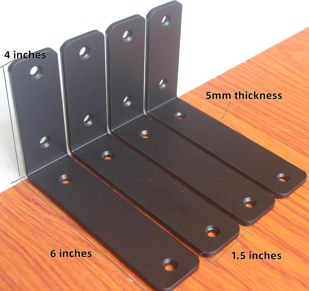$ 12.654-Pack Heavy Duty Black Iron Shelf Brackets - 100 lb Capacity